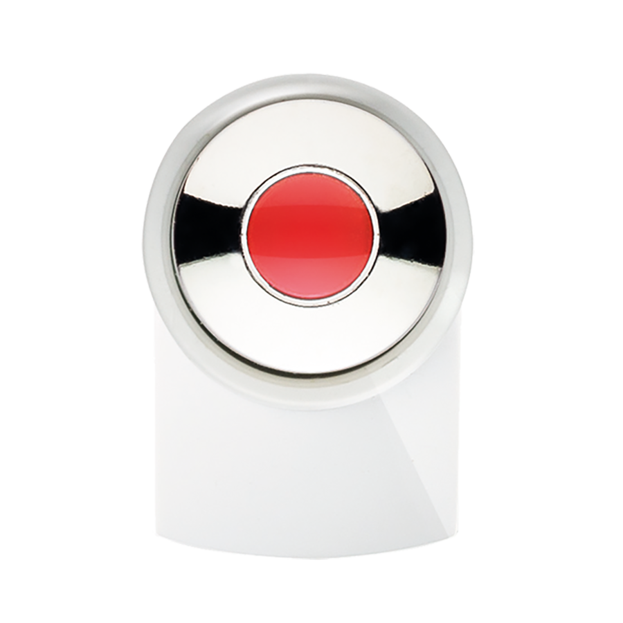 DOT D1 B CR Kugelschreiber Maxema, glänzende Flächen, deckende Farben, Gehäuse und Clip in Weiß, Druckknopf verchromt, kleine Kugel in deckenden Farben im Innern des Druckknopfes, blauschreibend