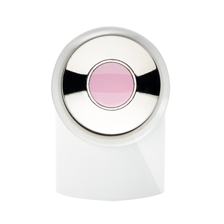 DOT D1 B CR Kugelschreiber Maxema, glänzende Flächen, deckende Farben, Gehäuse und Clip in Weiß, Druckknopf verchromt, kleine Kugel in deckenden Farben im Innern des Druckknopfes, blauschreibend
