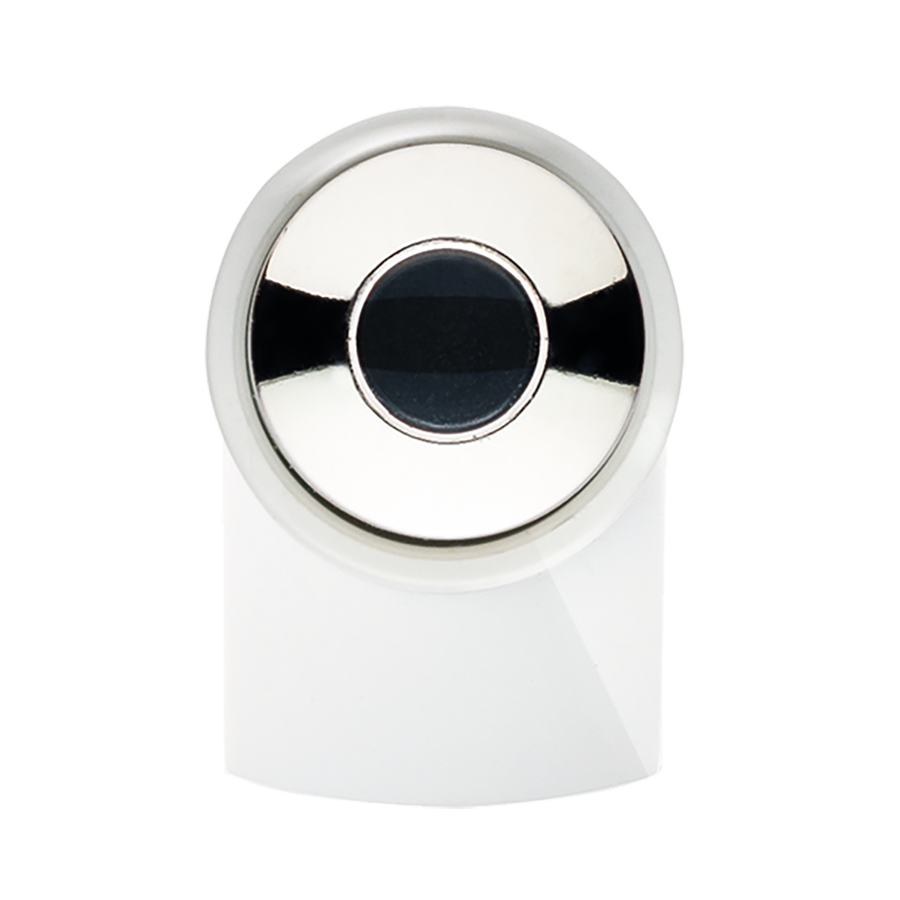 DOT D1 B CR Kugelschreiber Maxema, glänzende Flächen, deckende Farben, Gehäuse und Clip in Weiß, Druckknopf verchromt, kleine Kugel in deckenden Farben im Innern des Druckknopfes, blauschreibend
