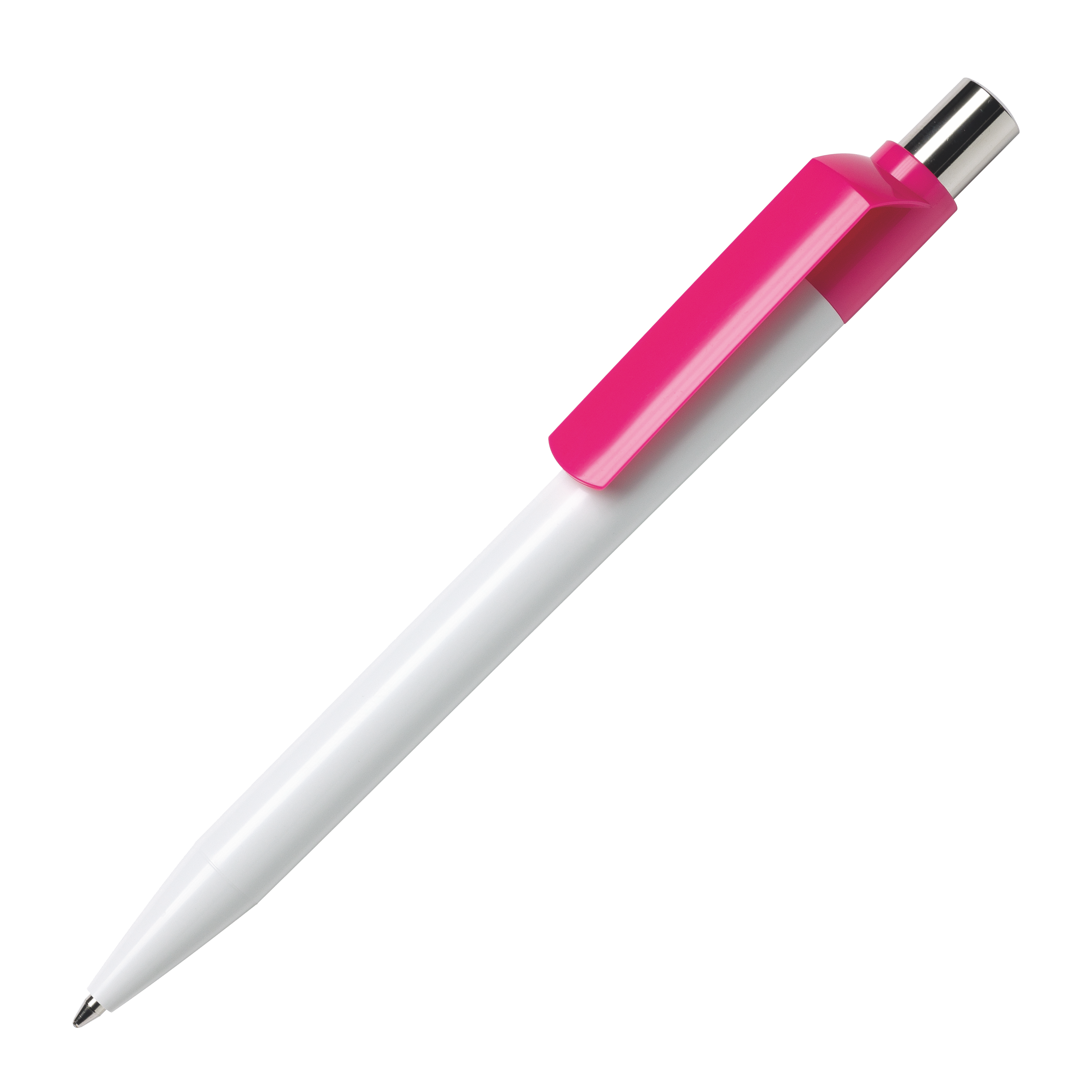 DOT D1 BC CR Kugelschreiber Maxema, Nüchtern und minimalistisch im Design - aber versehen mit einer ganz persönlichen Maxema-Note, dem kleinen Pünktchen im Drücker, wird dieses oft vernachlässigte Detail zu einem echten Stilelement. Das Gehäuse des Kugelschreibers ist aus hochglänzendem, solidem, weißem ABS gefertigt, der Drücker aus hochglänzendem Metall. Drücker-Element und Clip sind in 20 Farben lieferbar, die bereits ab 2.000 Stück untereinander kombinierbar sind. Er ist mit einer blauschreibenden Großraummine ausgestattet.