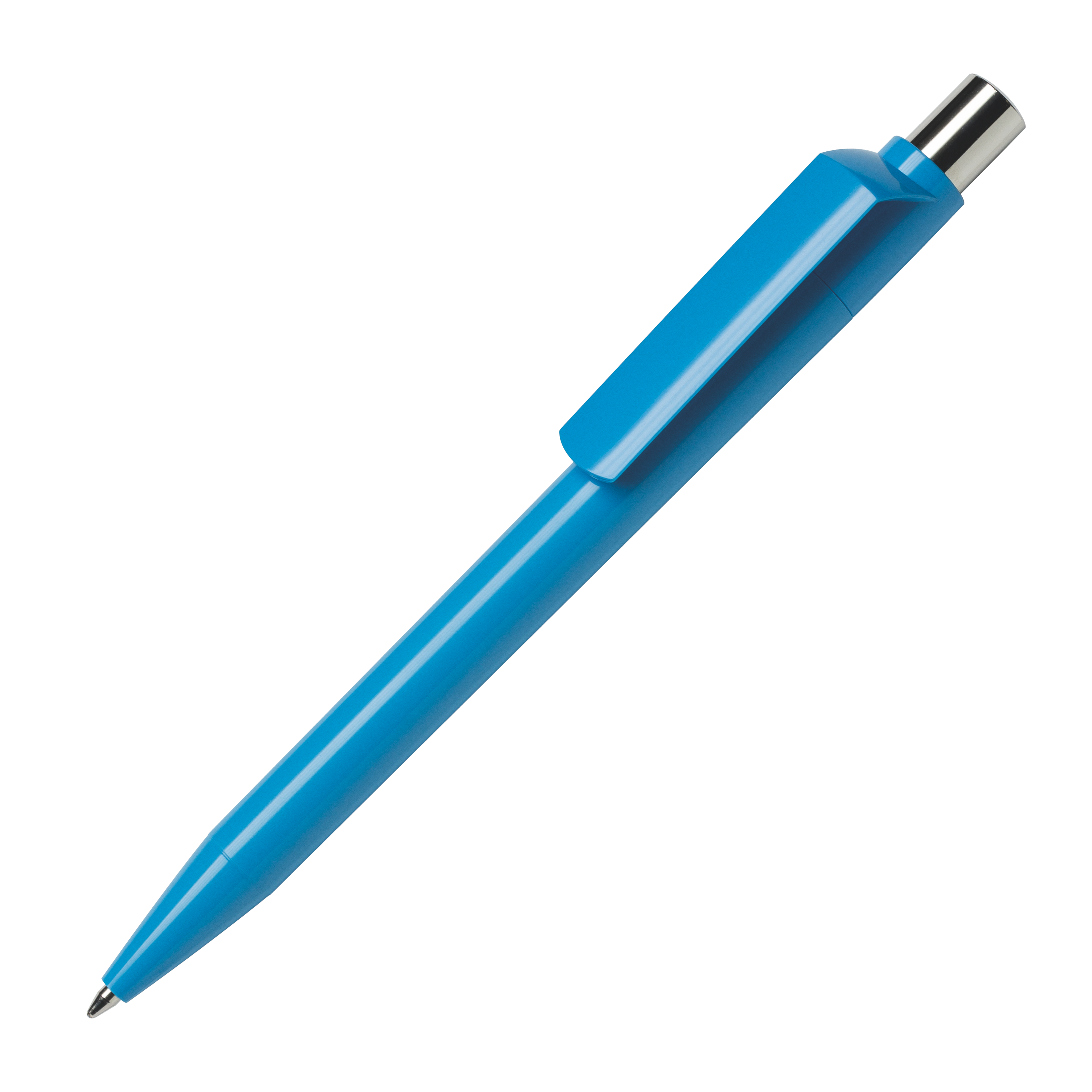DOT D1 C CR Kugelschreiber Maxema, Nüchtern und minimalistisch im Design - aber versehen mit einer ganz persönlichen Maxema-Note, dem kleinen Pünktchen im Drücker, wird dieses oft vernachlässigte Detail zu einem echten Stilelement. Das Gehäuse, das Drücker-Element und der Clip sind in 21 soliden Farben lieferbar, die bereits ab 2.000 Stück untereinander kombinierbar sind. Der Drücker ist aus glänzendem Metall gefertigt. Der Kugelschreiber ist mit einer blauschreibenden Großraummine ausgestattet.