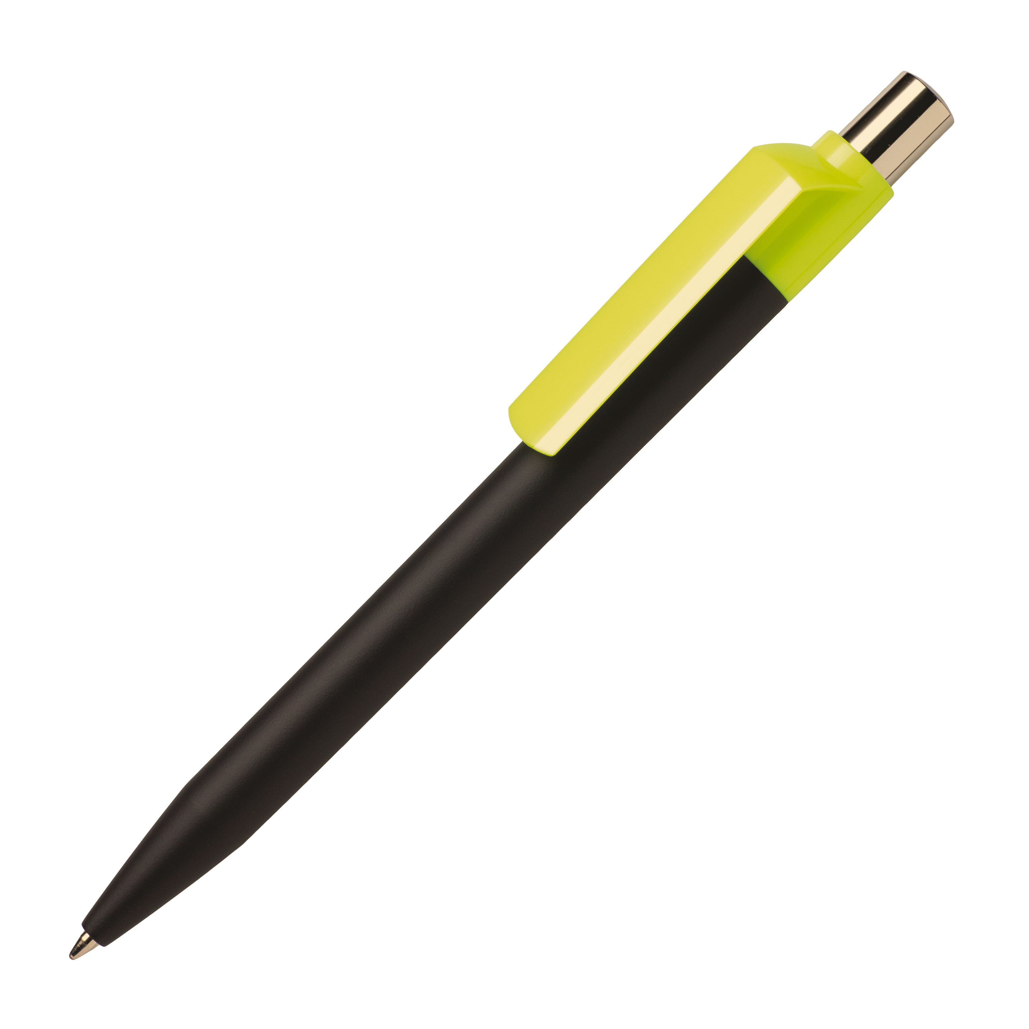 DOT D1 GOM KF CR Kugelschreiber Maxema, ABS-Kunststoff, deckende Farben, gummiertes Gehäuse in schwarz, Clip in fluo Farben mit Hochglanz-Finish, Druckknopf verchromt, kleine Kugel in fluo Farben im Innern des Druckknopfes, blauschreibend