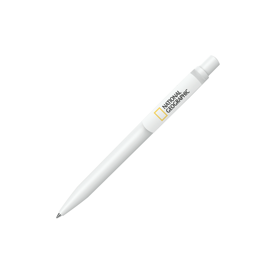 DOT D1 MATT B Kugelschreiber Maxema, deckende Farben, Gehäuse, Clip und Druckknopf in Weiß in satinierte Flächen, kleine Kugel in deckenden Farben mit Hochglanz-Finish im Innern des Druckknopfes