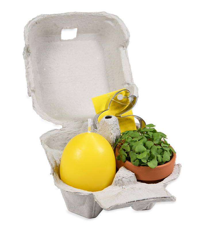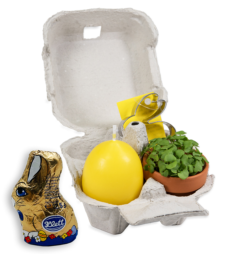 Vielerlei Osterüberraschungen erwarten den Kunden bei diesem kreativen Werbeartikel. Im Original Eierkarton befinden sich wahlweise unterschiedliche Produkte, die wir in drei Varianten anbieten. Ab einer Mindestmenge von 500 Stück mischen wir die Produkte auch gerne in anderen Kombinationen. Mit welcher der liebevollen Möglichkeiten Sie Ihren Kunden eine Freude machen, bleibt Ihnen überlassen. Der außen angebrachte Werbeaufkleber bietet Platz für einen frühlingshaften Gruß zum Osterfest.