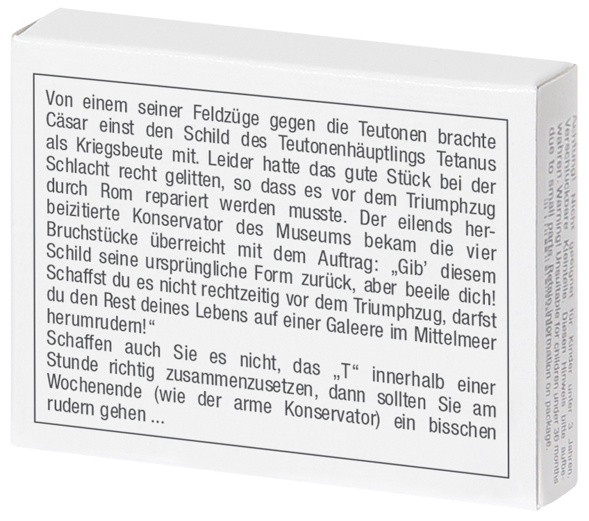 Cäsar erbeutete beim Teutonenfeldzug ein Schild in T-Form. Doch es zerbrach in vier Teile. Reparieren Sie es. Auch in englischer Version erhältlich: Art.-Nr. 102522.