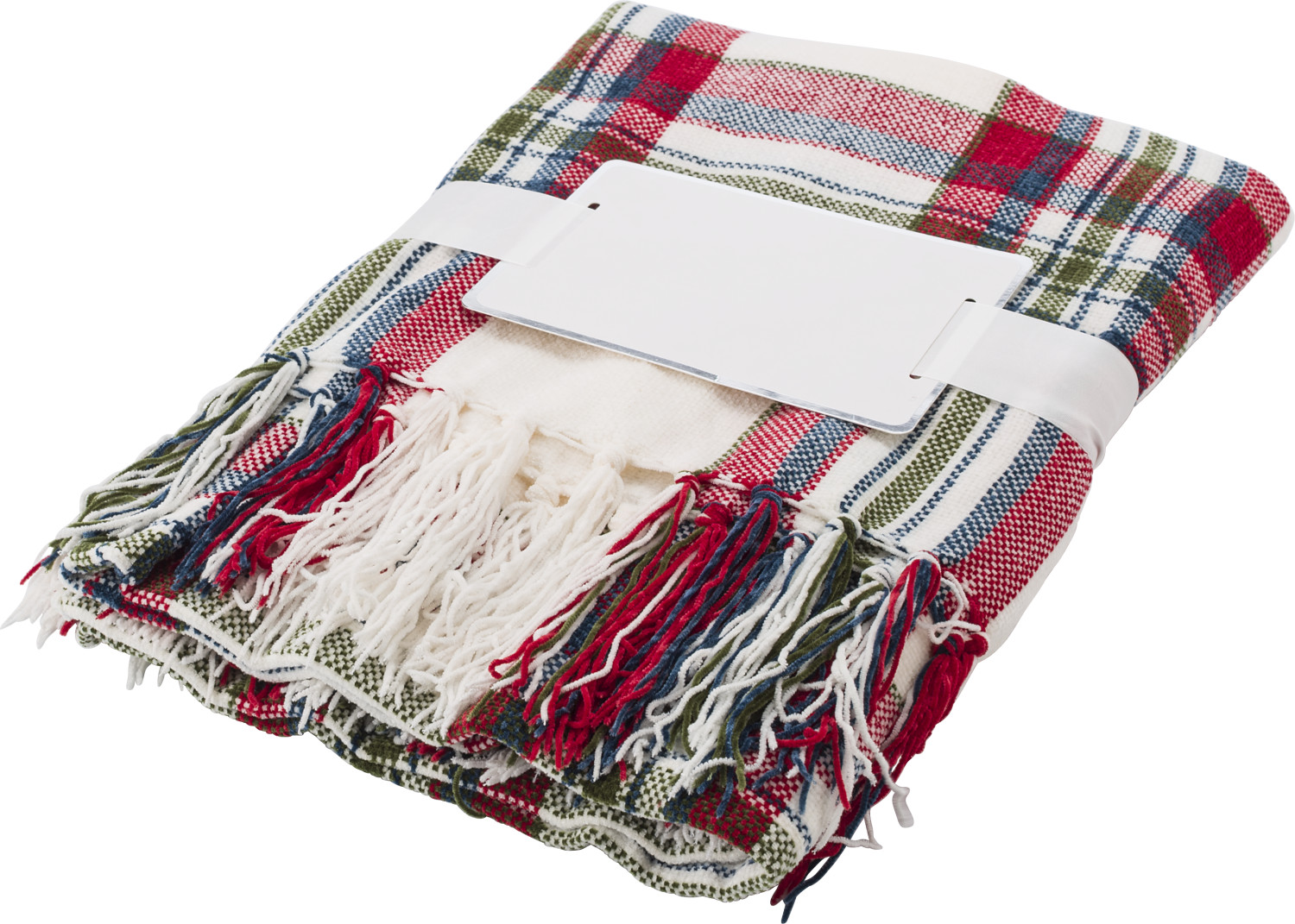 Decke aus 100% Polyester (600 gr / m²), kariert, mit Fransen auf der kurzen Seite und dank des Chenillegarns besonders weich. Die Decke wird zusammengefaltet mit einem Label für die Werbeanbringung geliefert.