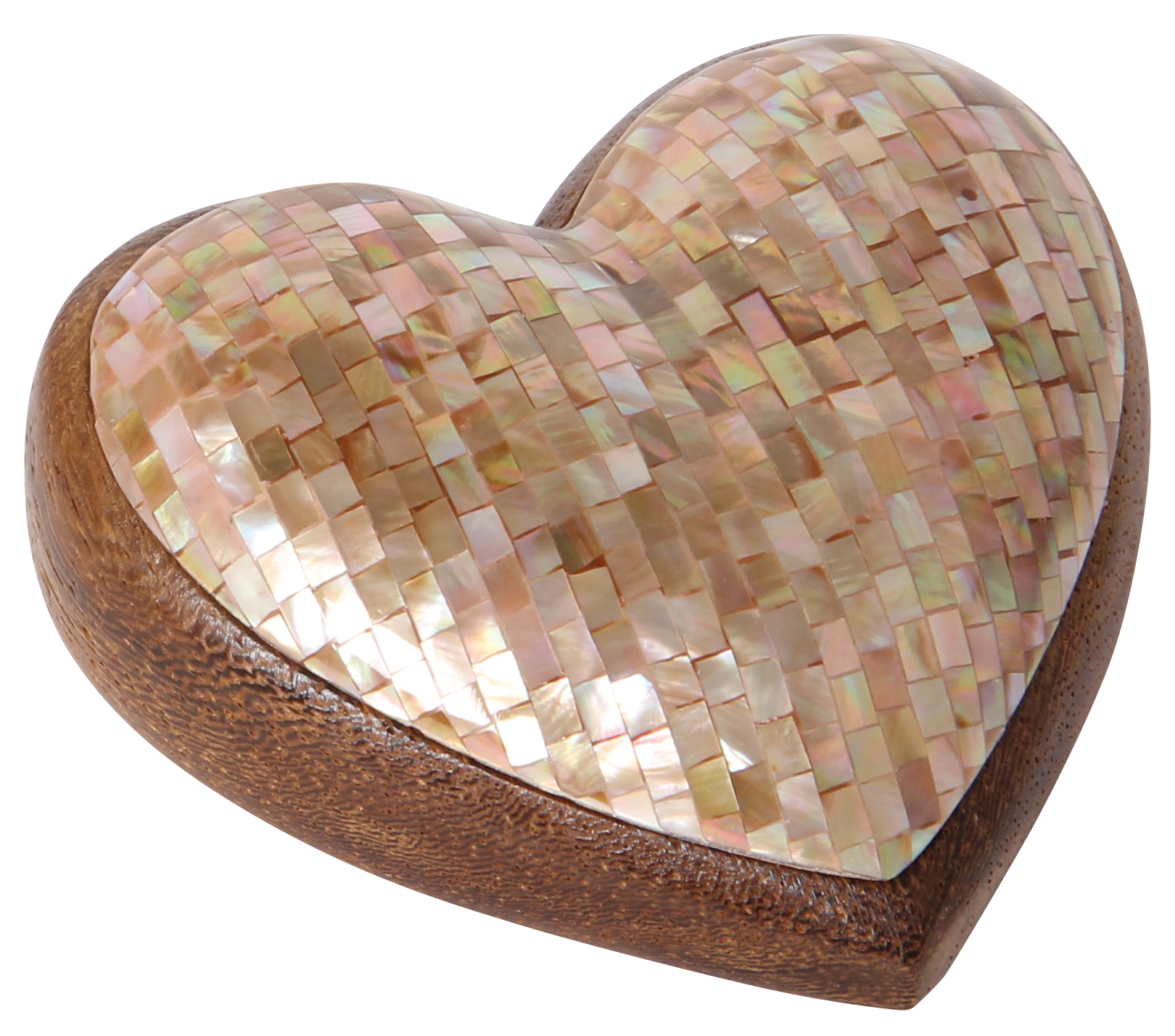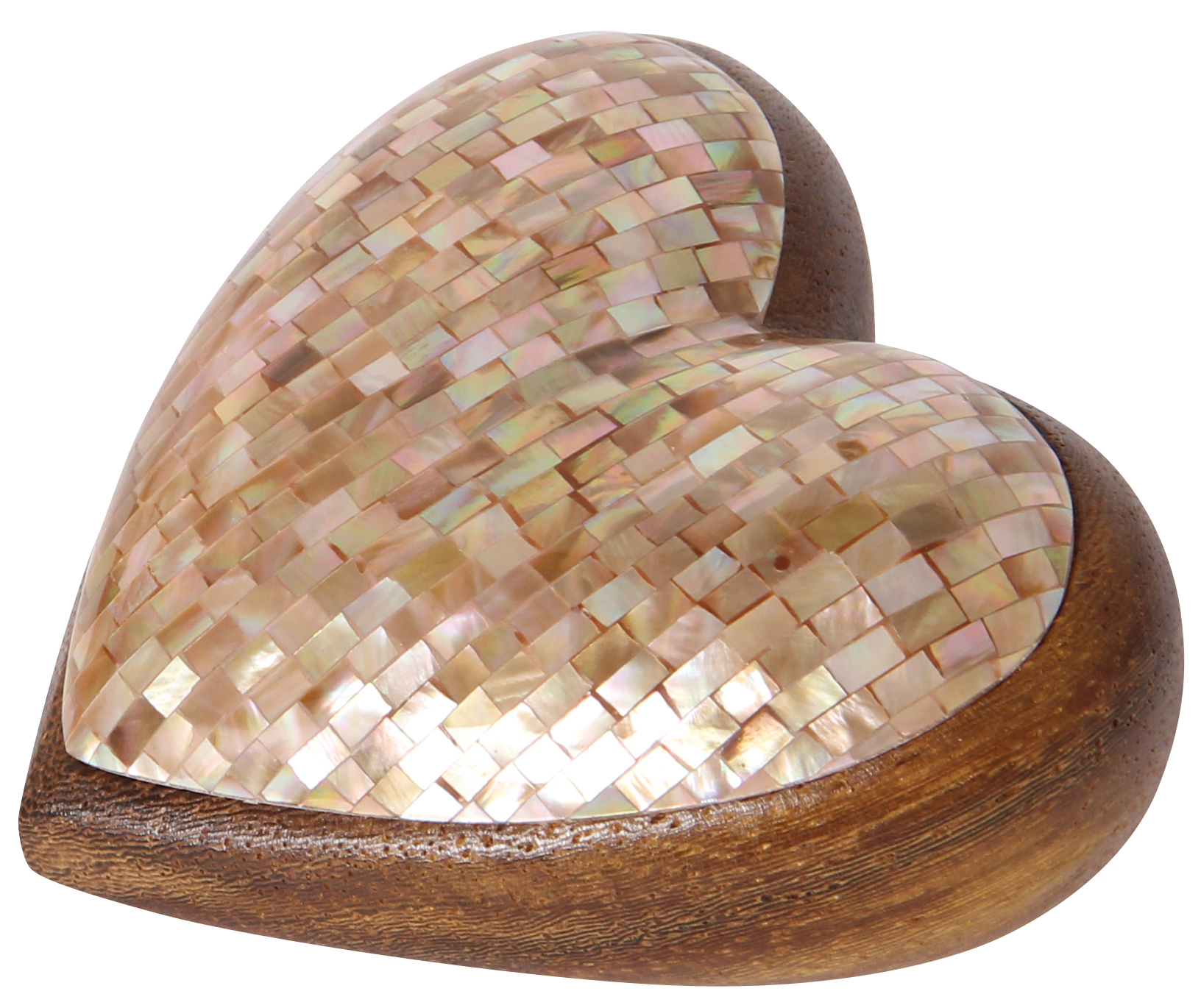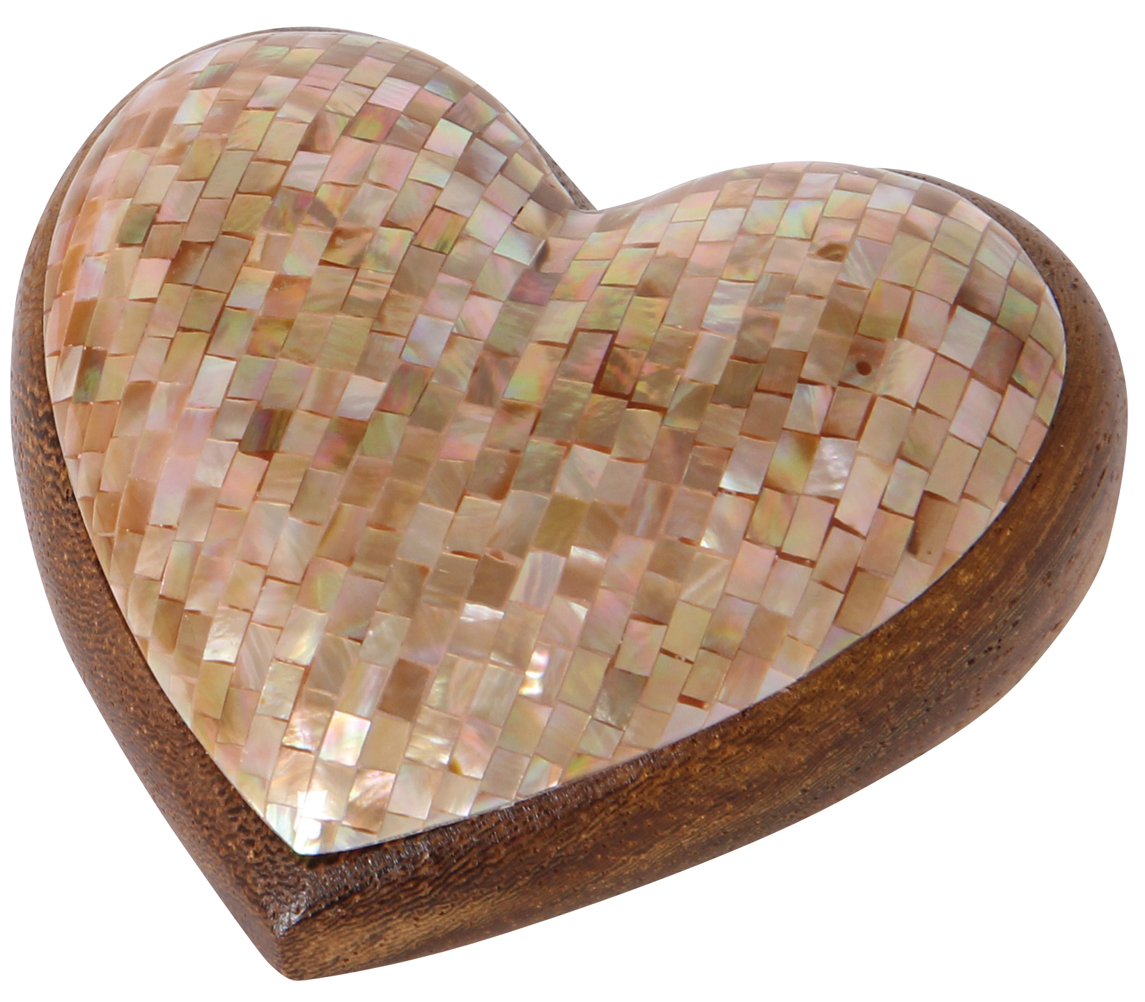 Aufwendig verarbeitetes Edelholzherz mit Capiz Muschelschalen-Verzierung. Dekoratives Geschenk, das von Herzen kommt.