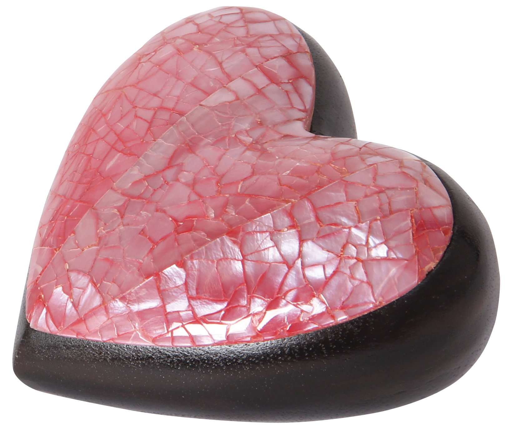 Aufwendig verarbeitetes Edelholzherz mit Capiz Muschelschalen-Verzierung. Dekoratives Geschenk, das von Herzen kommt.