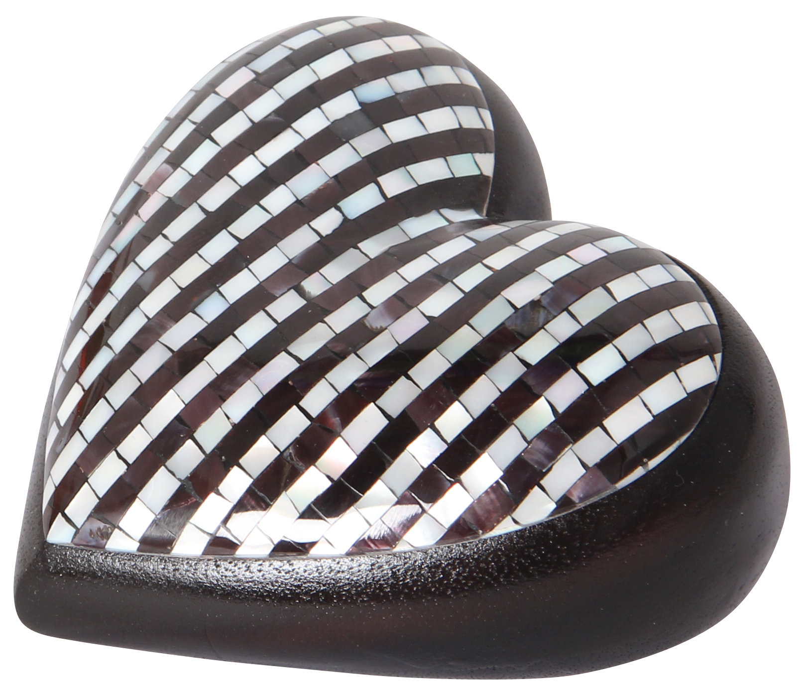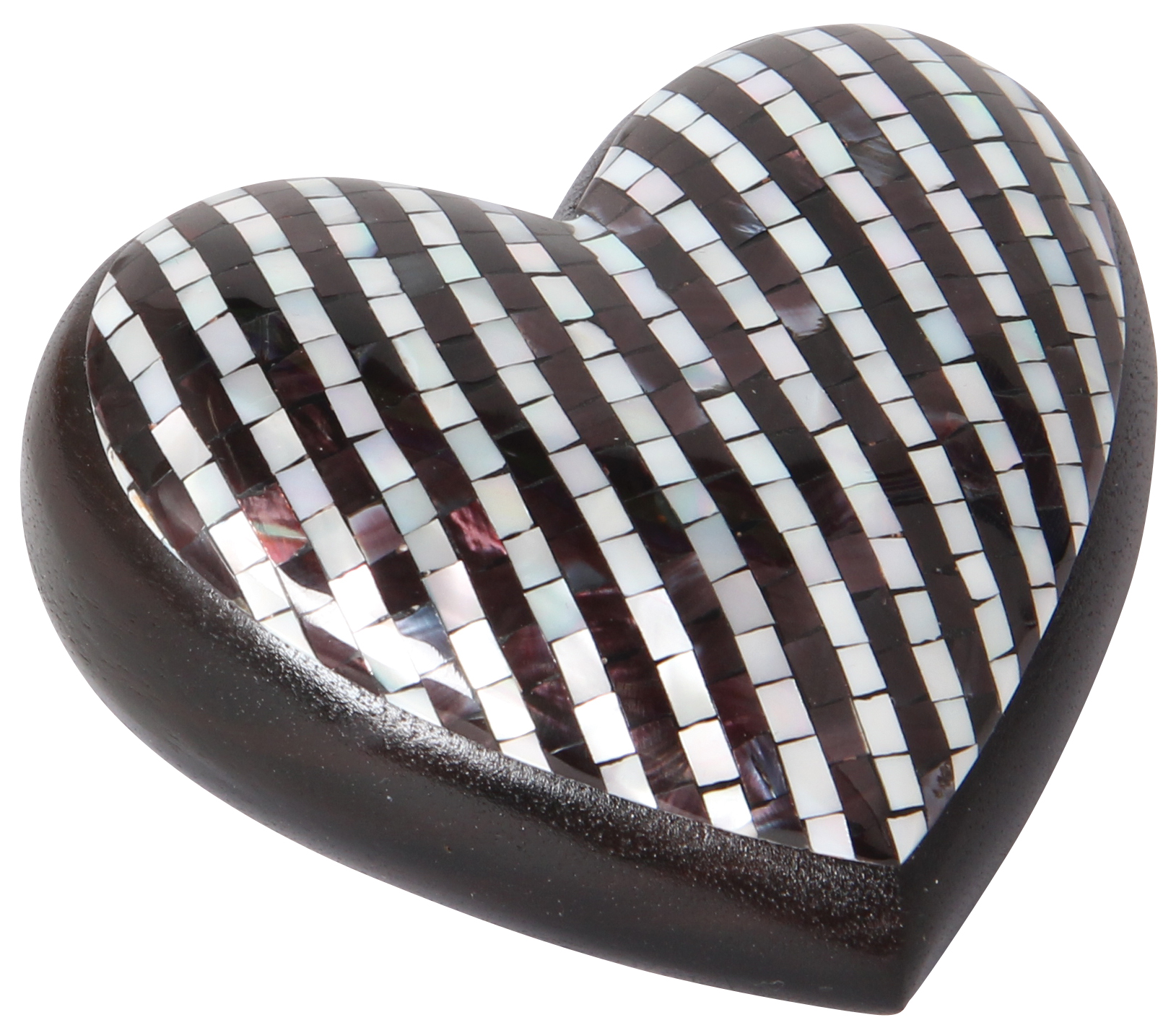Aufwendig verarbeitetes Edelholzherz mit Capiz Muschelschalen-Verzierung. Dekoratives Geschenk, das von Herzen kommt.