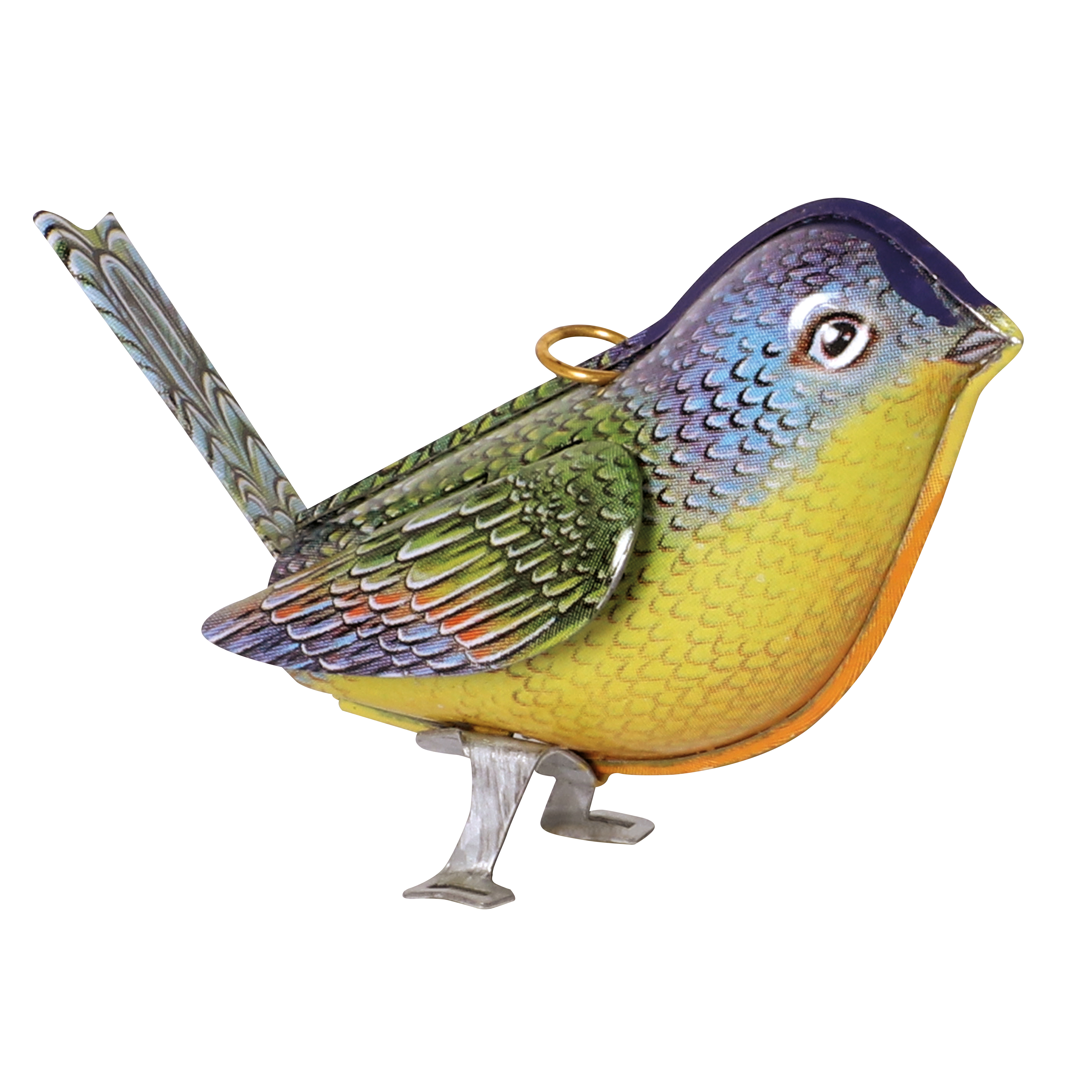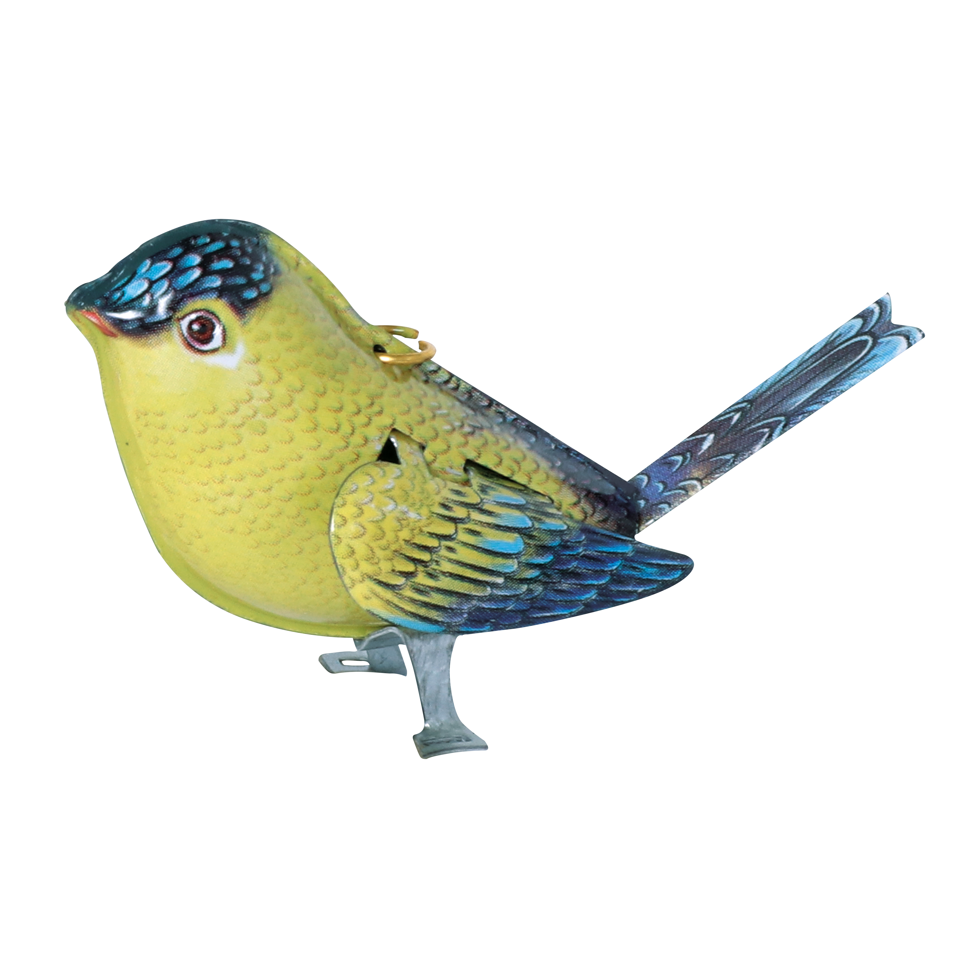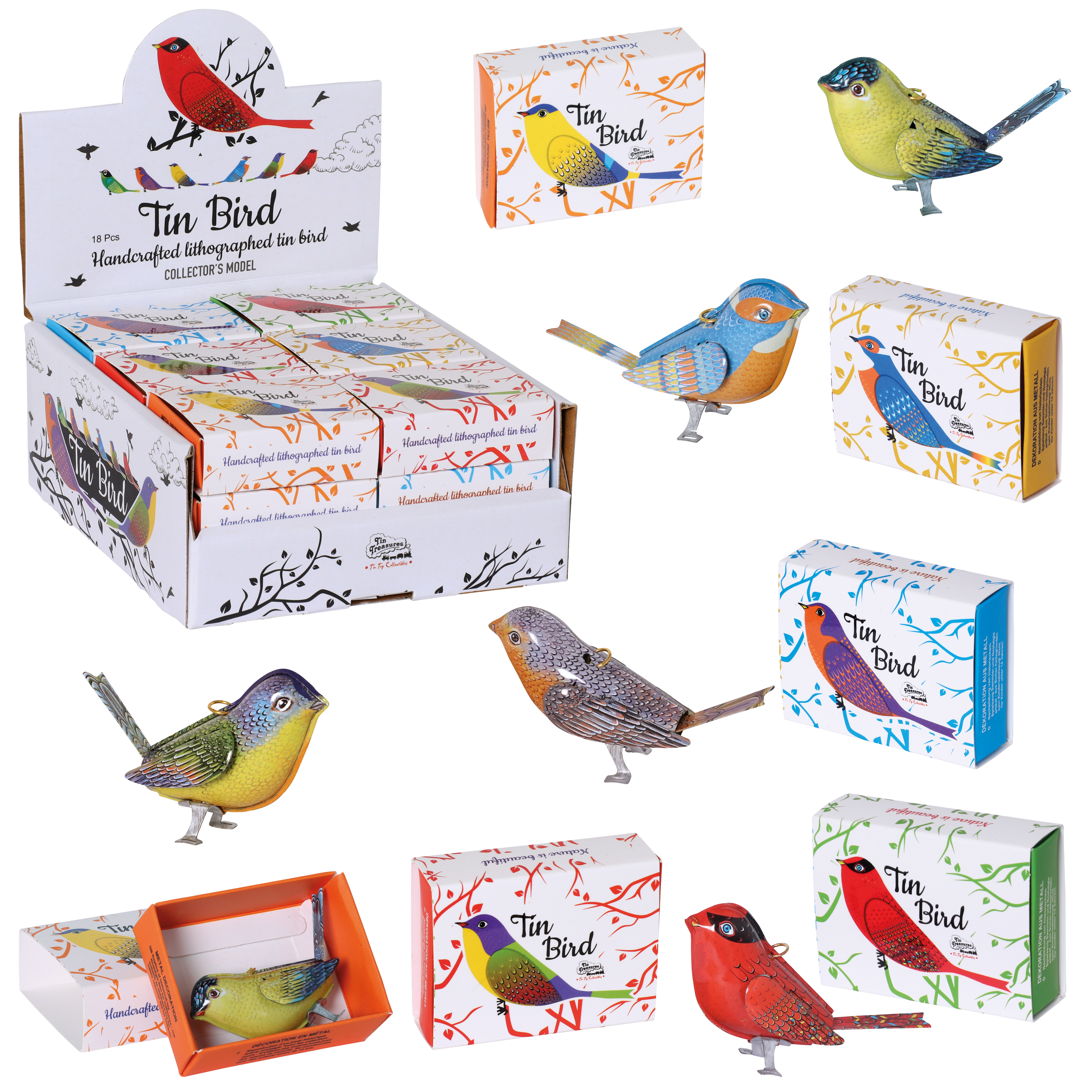 Nostalgische Dekoration aus Metall. Die liebevoll und detailreich gestalteten Vögel haben einen beweglichen Schwanz und Flügel. Drückt man das Schwänzchen nach unten hebt der Vogel die Flügel! Mit Öse zum Aufhängen eignen sich die bunten Vögel gut zum Dekorieren. Viele Designs sortiert. Je in Geschenkbox.
