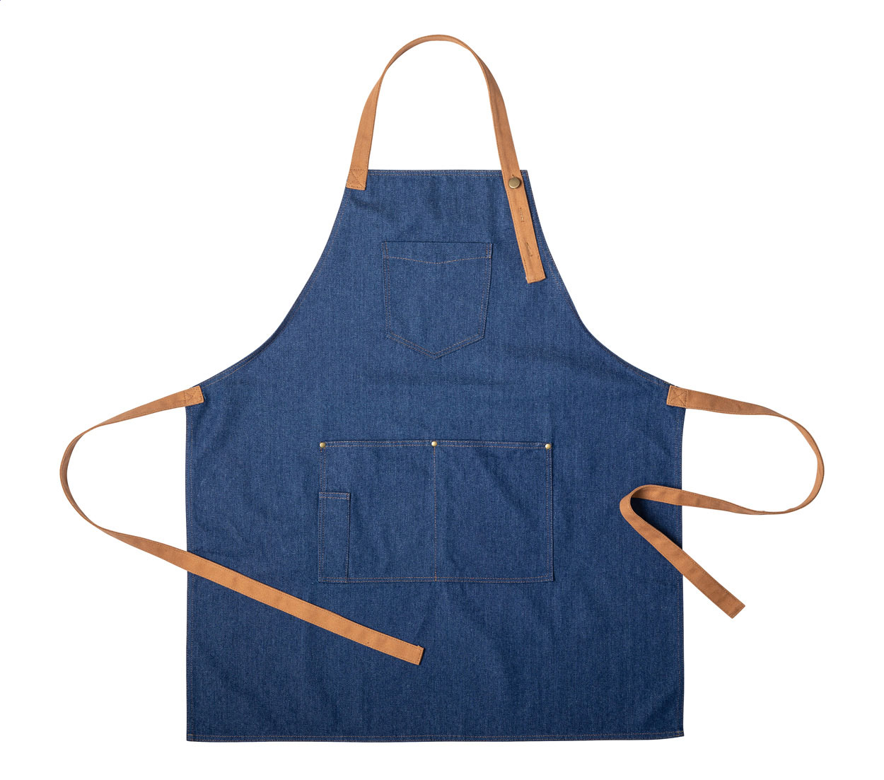 Polyester-Denim-Schürze (240 g / m²) mit Fronttaschen und verstellbaren Trägern.