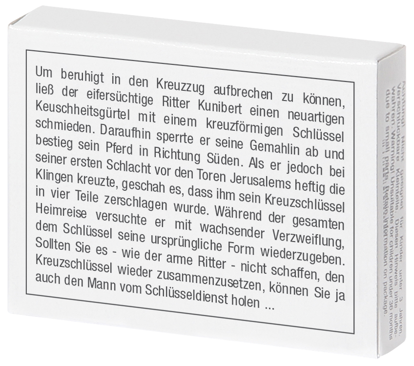 Bei einem Kreuzzug zerbrach dem Ritter Kunibert der Kreuzschlüssel für den Keuschheitsgürtel seiner Frau in vier Teile. Hilfe!!!. Auch in englischer Version erhältlich: Art.-Nr. 102535.