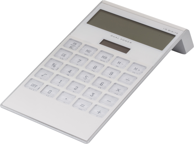 Adam Riese lässt grüßen! Mit diesem Design-Taschenrechner wird Ihre nächste Kalkulation zum Kinderspiel. Dank der Größen Tasten tippen Sie Zahlen sicher in das 10-stellige Display ein. Der Rechner beherrscht alle gängigen Rechenfunktionen. alle gängigen Rechenfunktionen 10-stelliges Display Material: ABS und Acryl Farbe: Weiß inkl. Batterie: 1 x LR44 Einzelverpackung Maße: 192 x 106 x 34 mm Gewicht: 142 g Werbeanbringung: Einzelnamen und Displaylaserung möglich (L2) Auf der Vorderseite unten, 60 x 18 mm (D2/UV1) Stylisch, schnell und dieses Produkt unterstützt aktiv den Ausgleich der entstehenden CO2-Emissionen durch zertifizierte Klimaschutzprojekte.