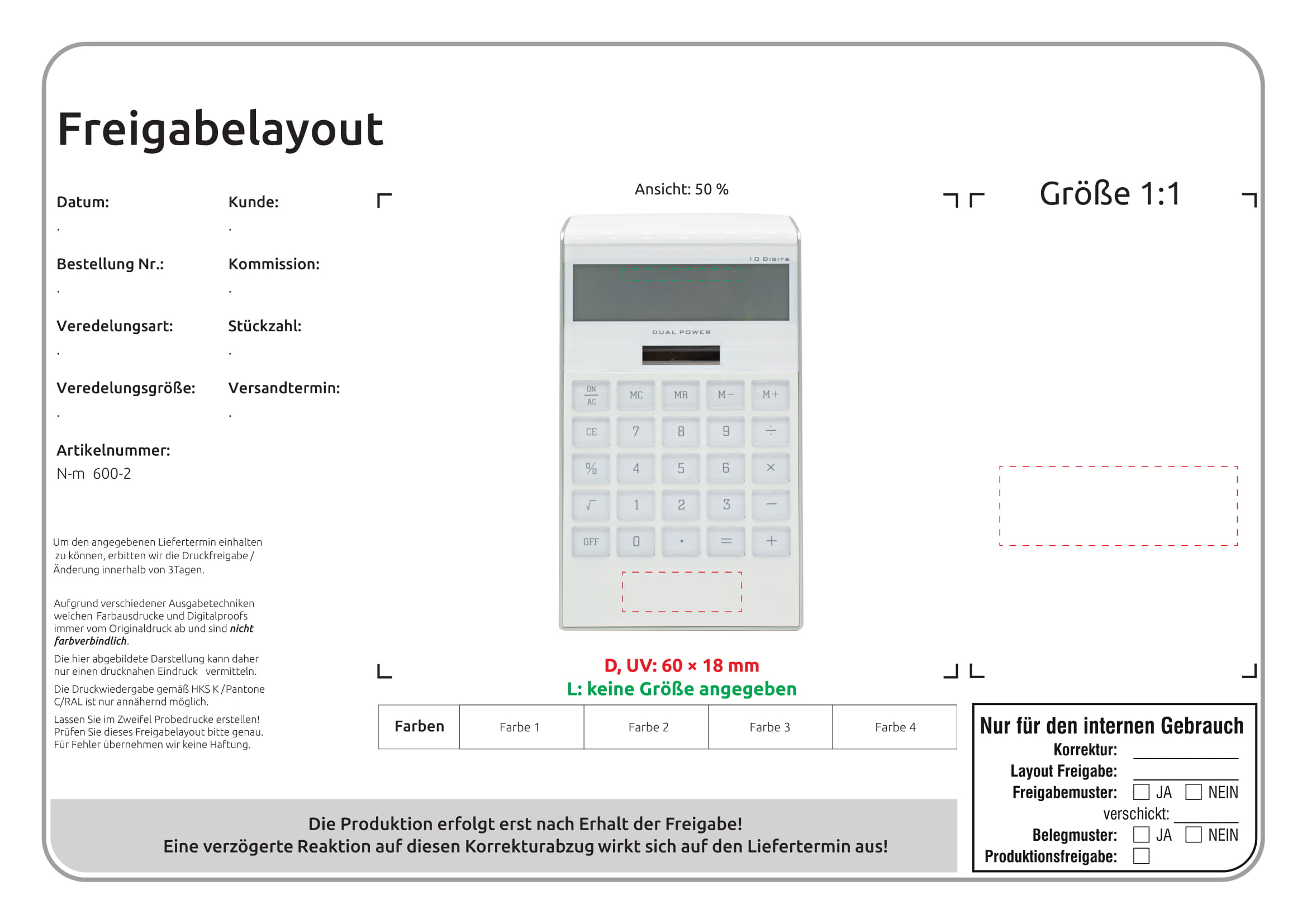 Veredelung: Tampondruck, 4-farbig, 60 x 18 mm, Auf der Vorderseite unten (D2)