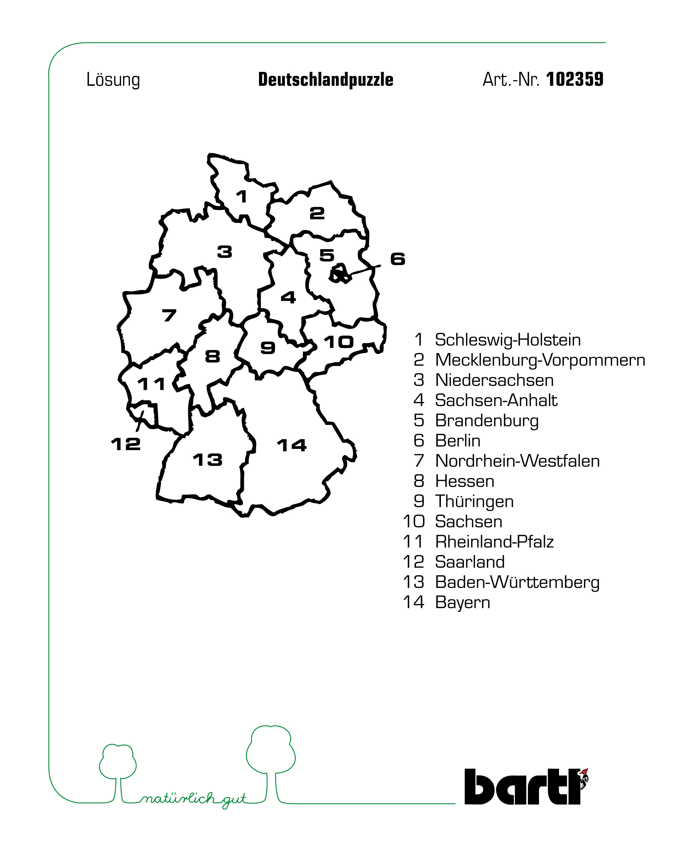 13 Teile. Sehr lehrreich: Jedes Puzzle-Teil stellt ein Bundesland dar!