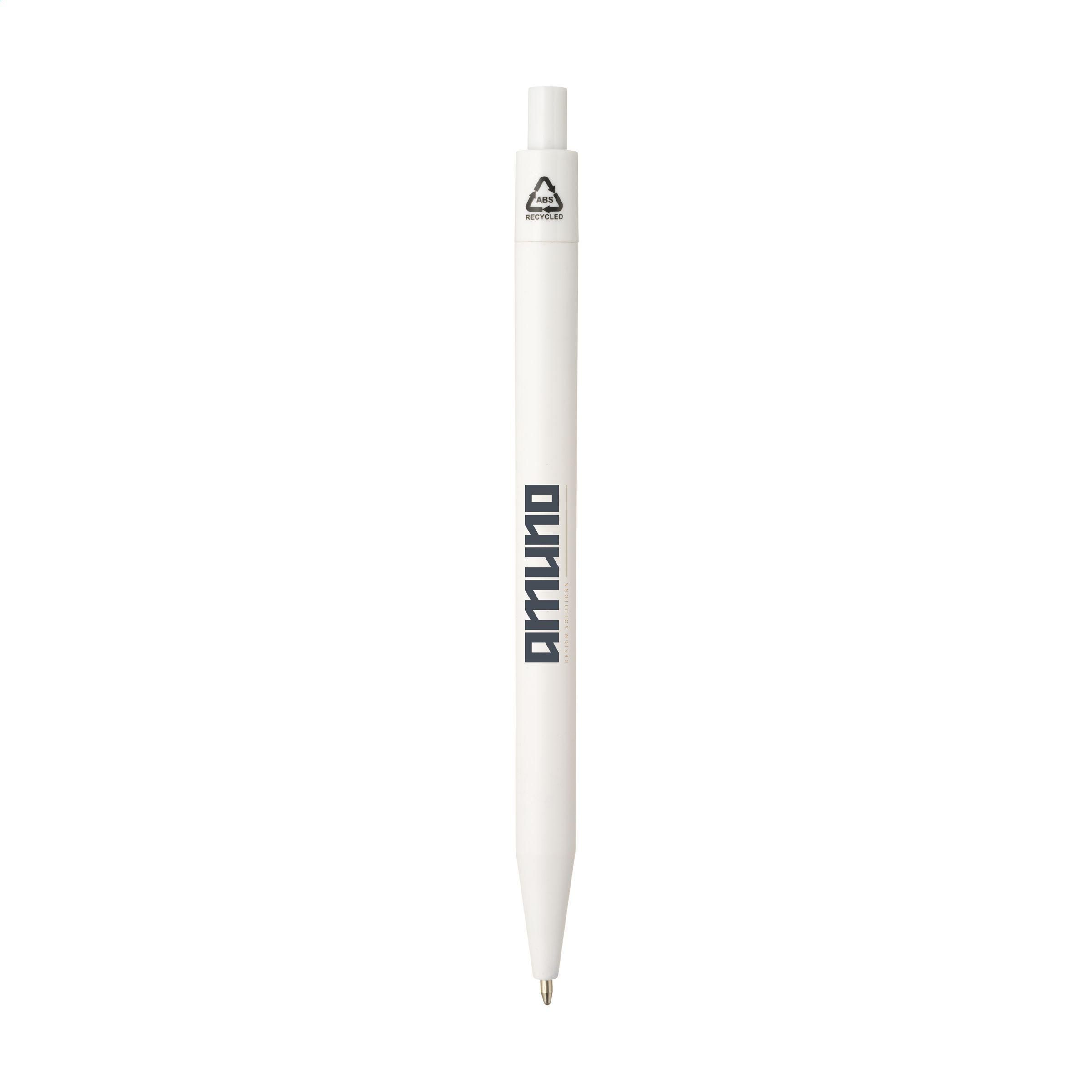 Beschreibung: Blauschreibender Kugelschreiber mit einem formschönen Gehäuse aus 100% GRS-zertifiziertem recyceltem ABS. Mit großzügigem Clip für auffälligen Aufdruck. GRS-zertifiziert. Gesamtes recyceltes Material: 83%.