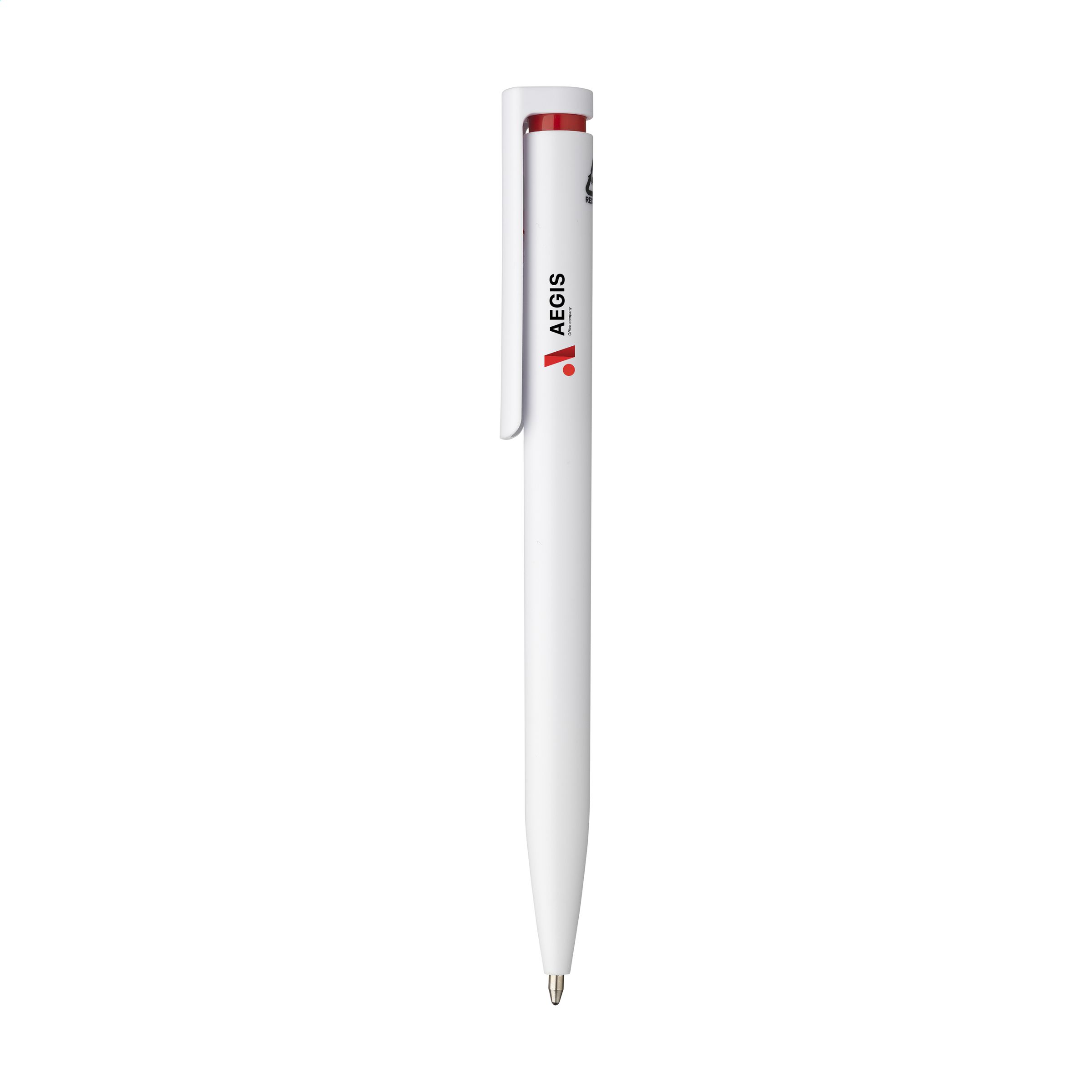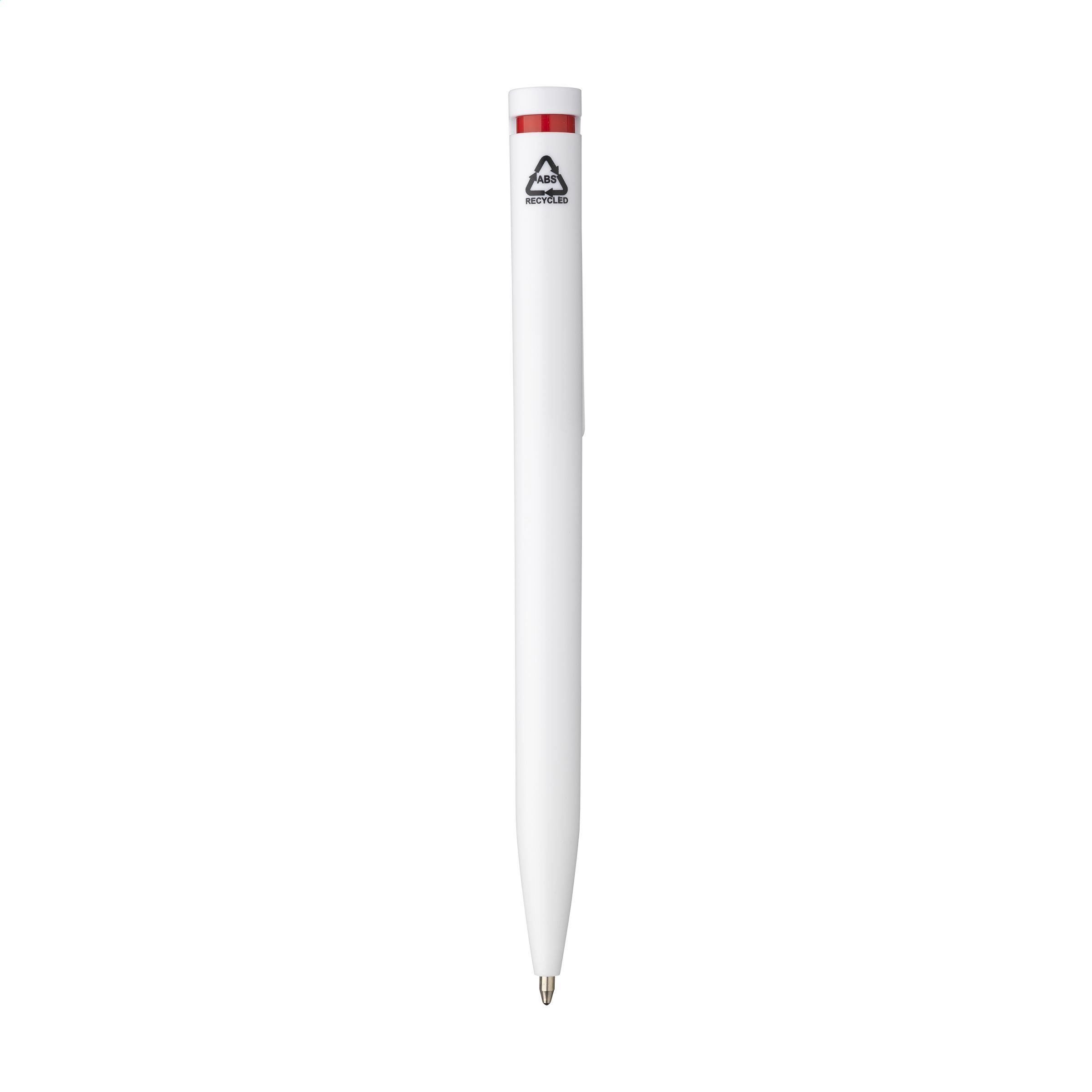 Beschreibung: Blauschreibender Kugelschreiber mit einem Gehäuse aus 100% recyceltem ABS. Der Clip / Druckknopf ist mit einem auffälligen farblichen Akzent gestaltet und bietet Platz für einen großzügigen, digitalen Vollfarbaufdruck. GRS-zertifiziert.