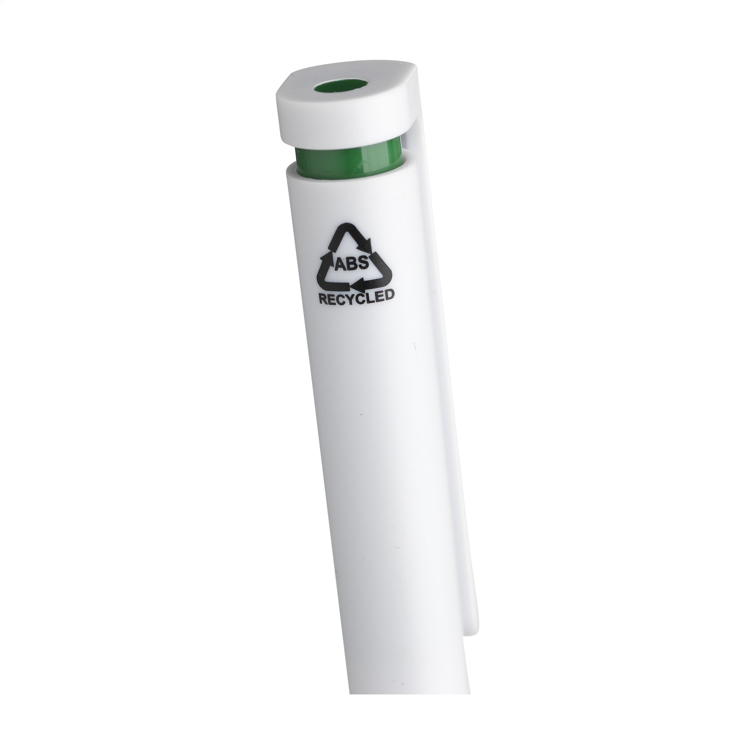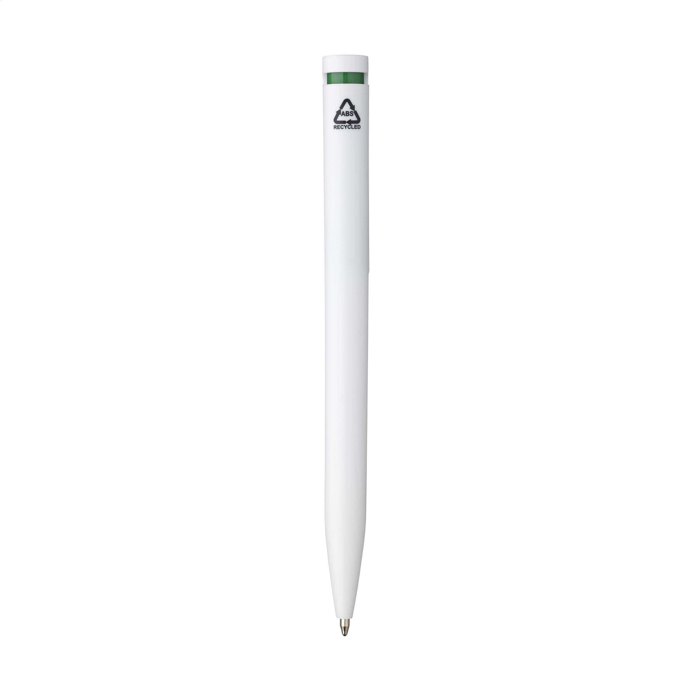 Beschreibung: Blauschreibender Kugelschreiber mit einem Gehäuse aus 100% recyceltem ABS. Der Clip / Druckknopf ist mit einem auffälligen farblichen Akzent gestaltet und bietet Platz für einen großzügigen, digitalen Vollfarbaufdruck. GRS-zertifiziert.