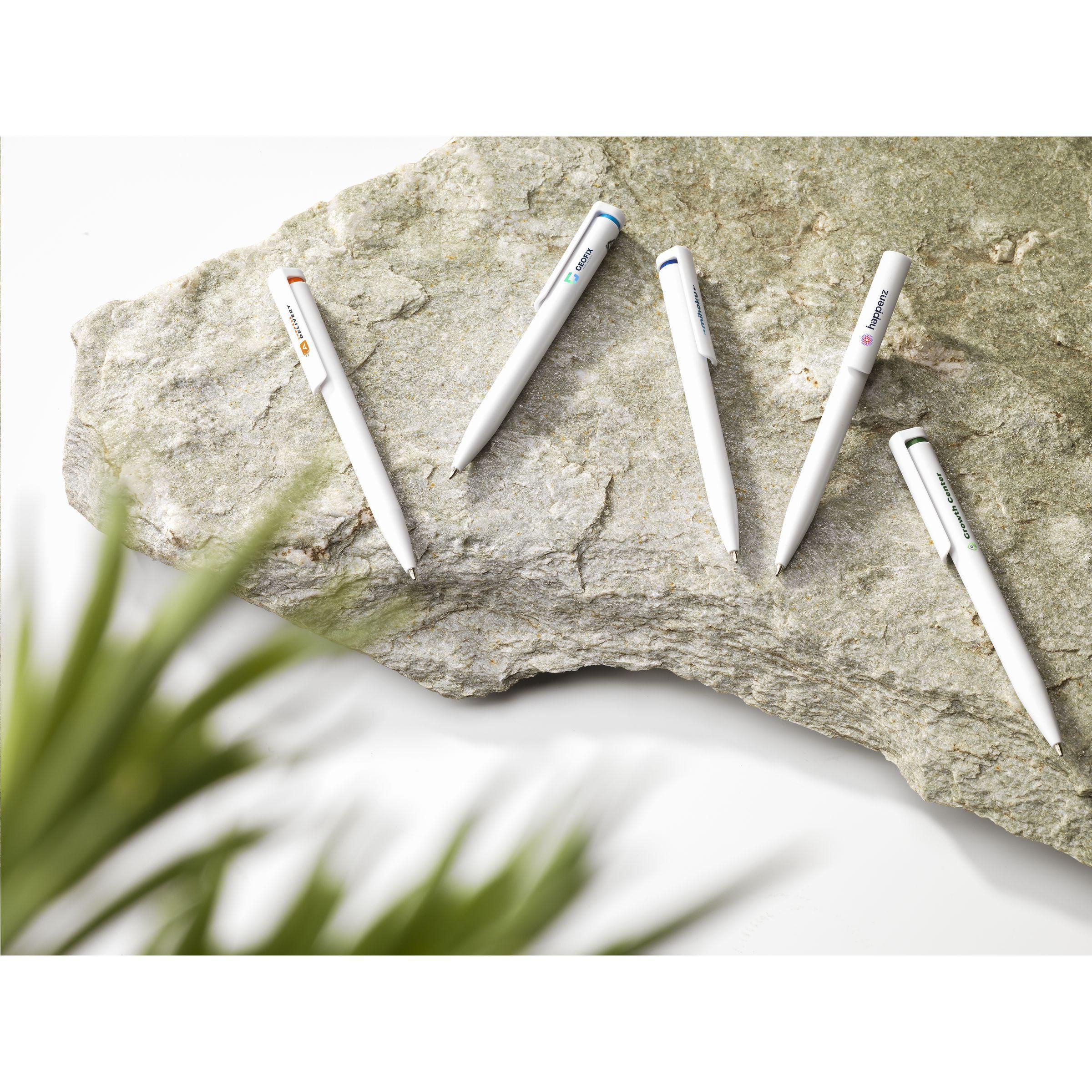 Beschreibung: Blauschreibender Kugelschreiber mit einem Gehäuse aus 100% recyceltem ABS. Der Clip/Druckknopf ist mit einem auffälligen farblichen Akzent gestaltet und bietet Platz für einen großzügigen, digitalen Vollfarbaufdruck. GRS-zertifiziert.