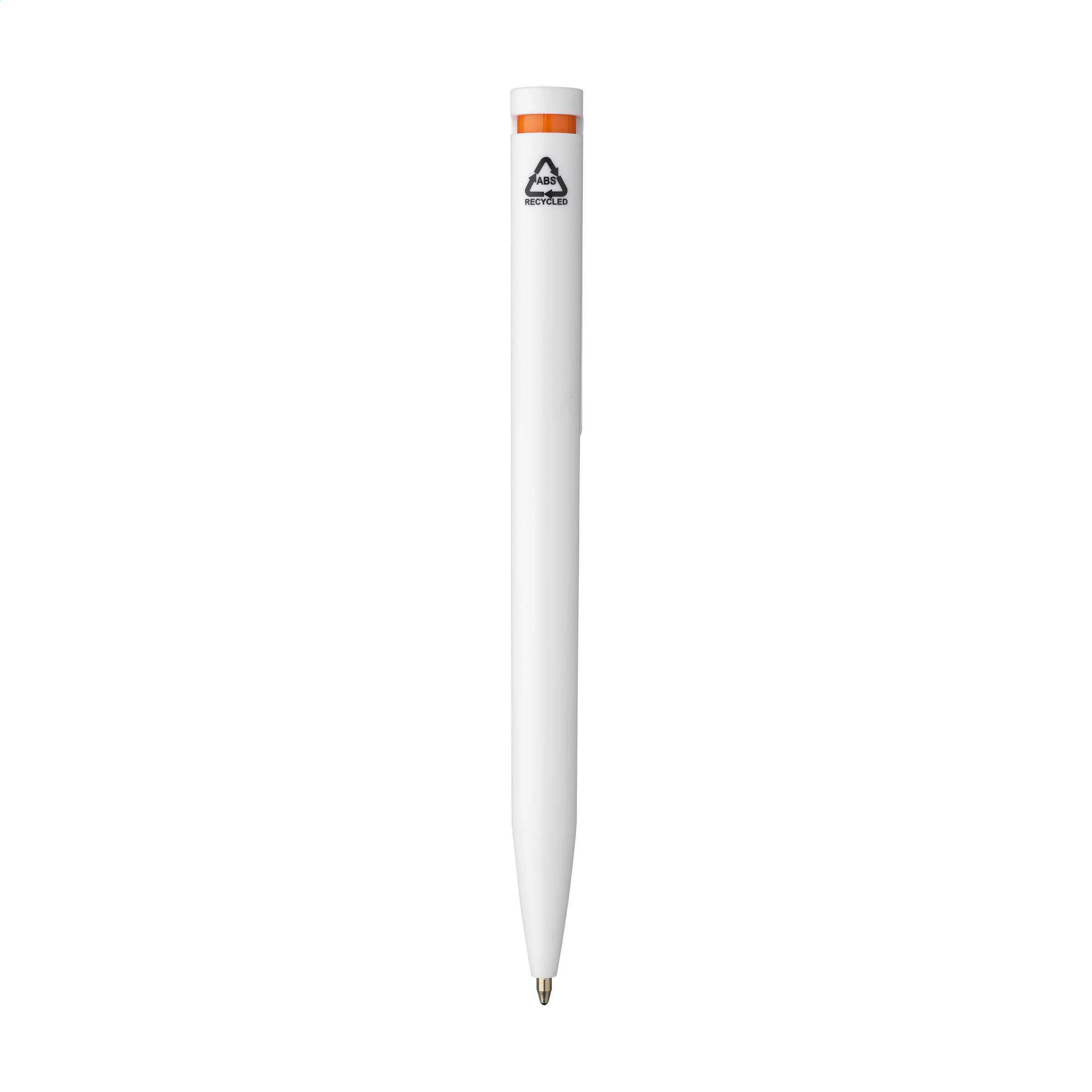Beschreibung: Blauschreibender Kugelschreiber mit einem Gehäuse aus 100% recyceltem ABS. Der Clip/Druckknopf ist mit einem auffälligen farblichen Akzent gestaltet und bietet Platz für einen großzügigen, digitalen Vollfarbaufdruck. GRS-zertifiziert.