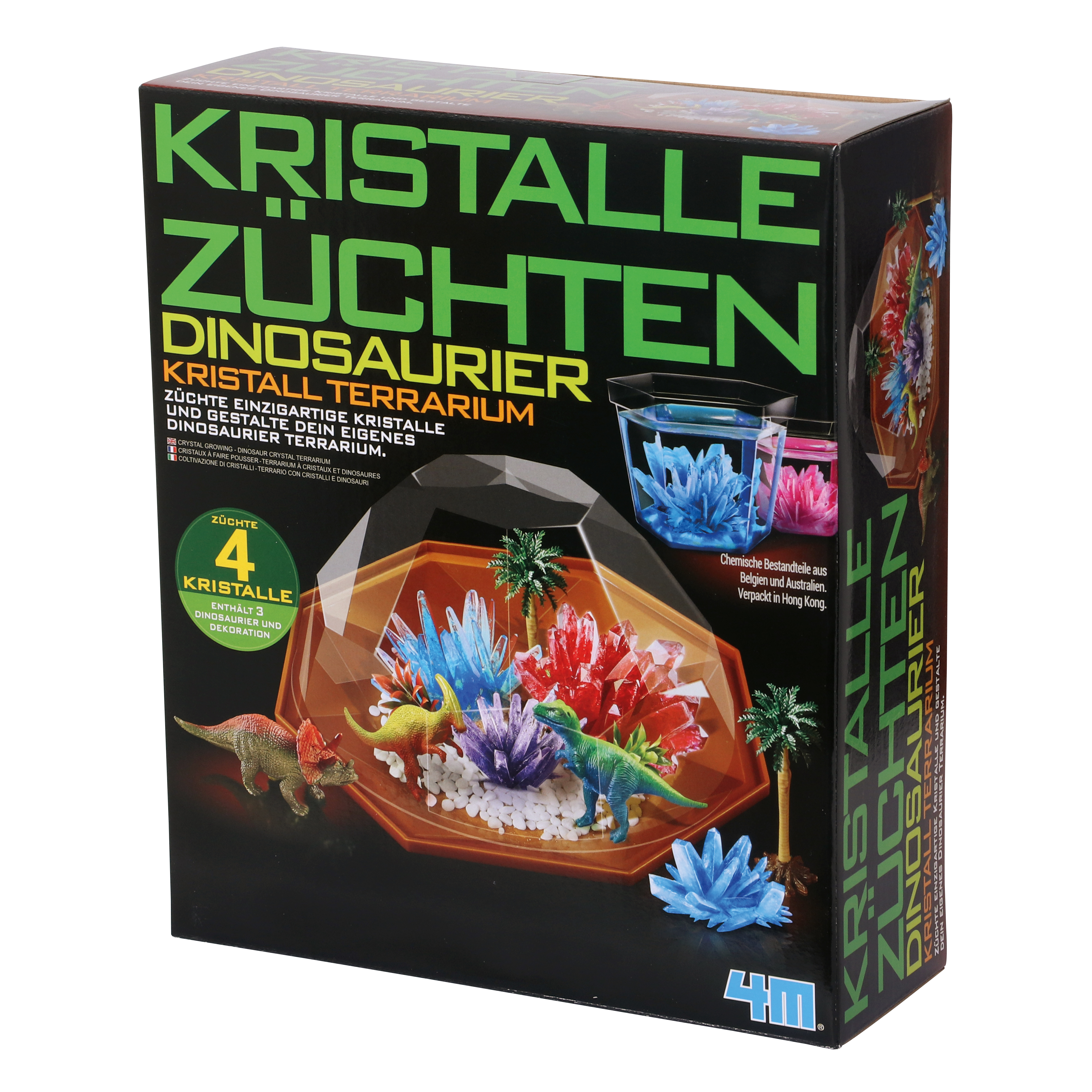 Züchte deine eigenen Kristalle und dekoriere damit dein Dinosaurier Terrarium! Das Kristallpulver genügt für vier Kristalle. Inhalt: Kristallpulver, 3 Farbstoffe, Kristallsalz Becher mit Verschluss, Steine, Löffel, transparente Becher, eine ausführliche Anleitung sowie drei Dinosaurier, Bäume und Planzen.