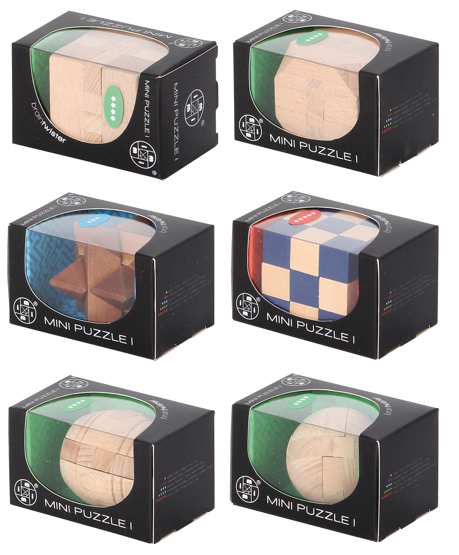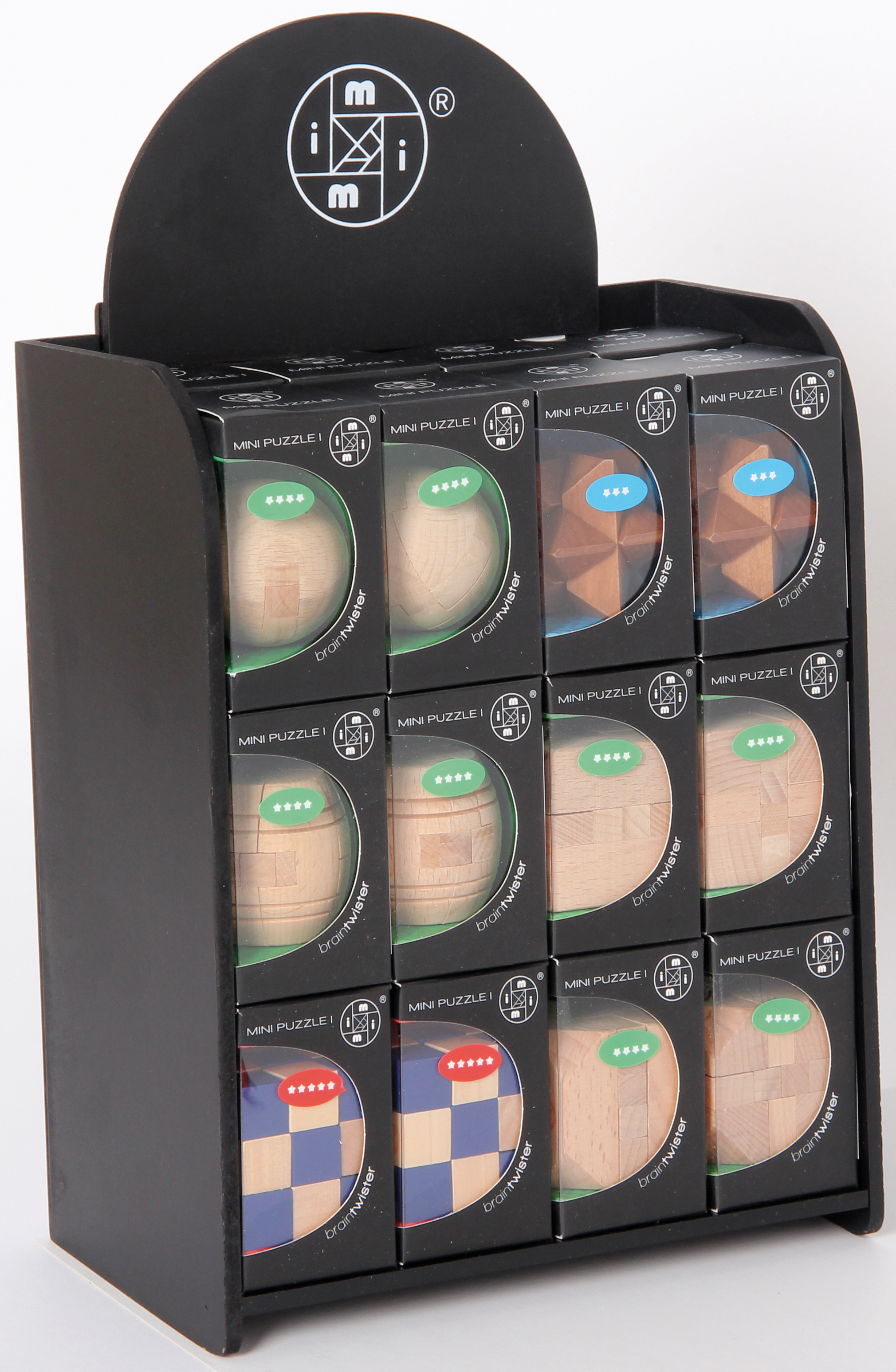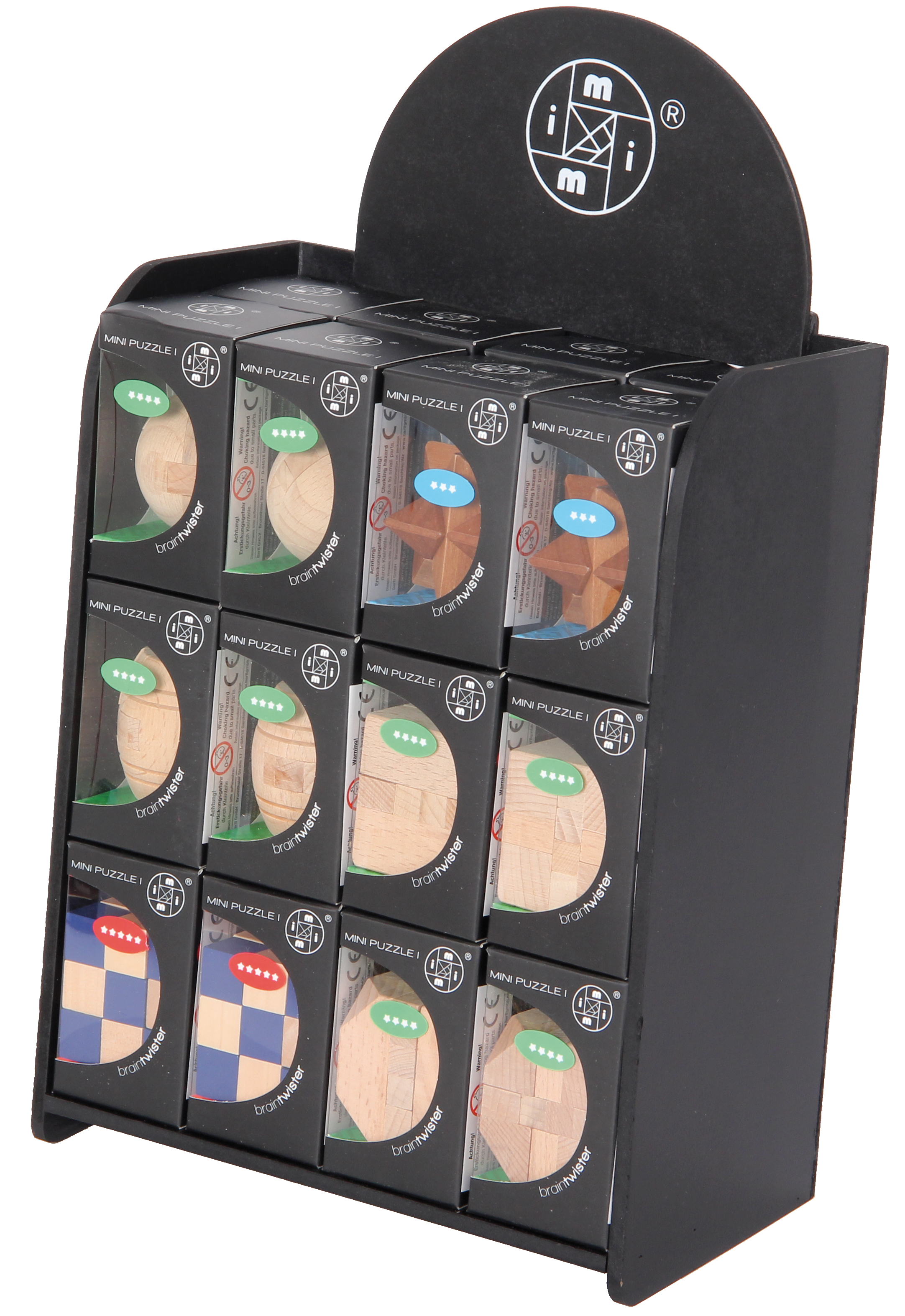 Das Holzdisplay enthält 24 Puzzles in sechs verschiedenen Motiven. Puzzlegröße: ca. 4 x 4x4 cm.