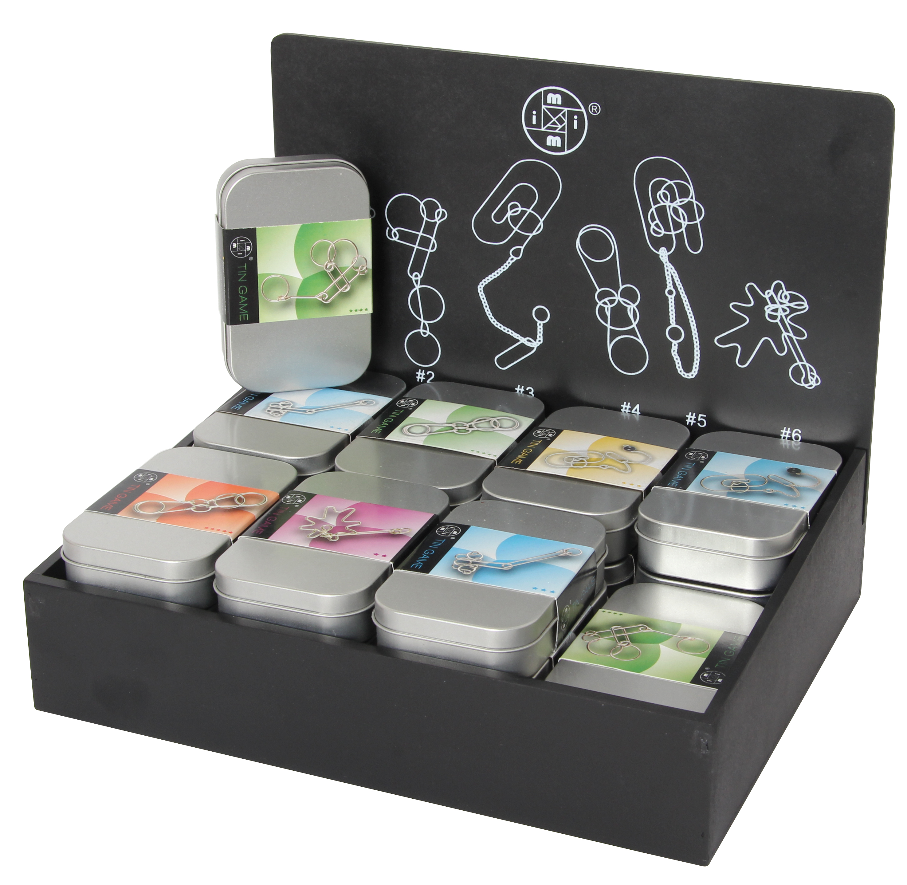 Inhalt: 24 Metallpuzzles in sechs Motiven im Holzdisplay. Jedes Puzzle in Metalldose. Ab 8 Jahren. Puzzlelänge: 10 - 16 cm.