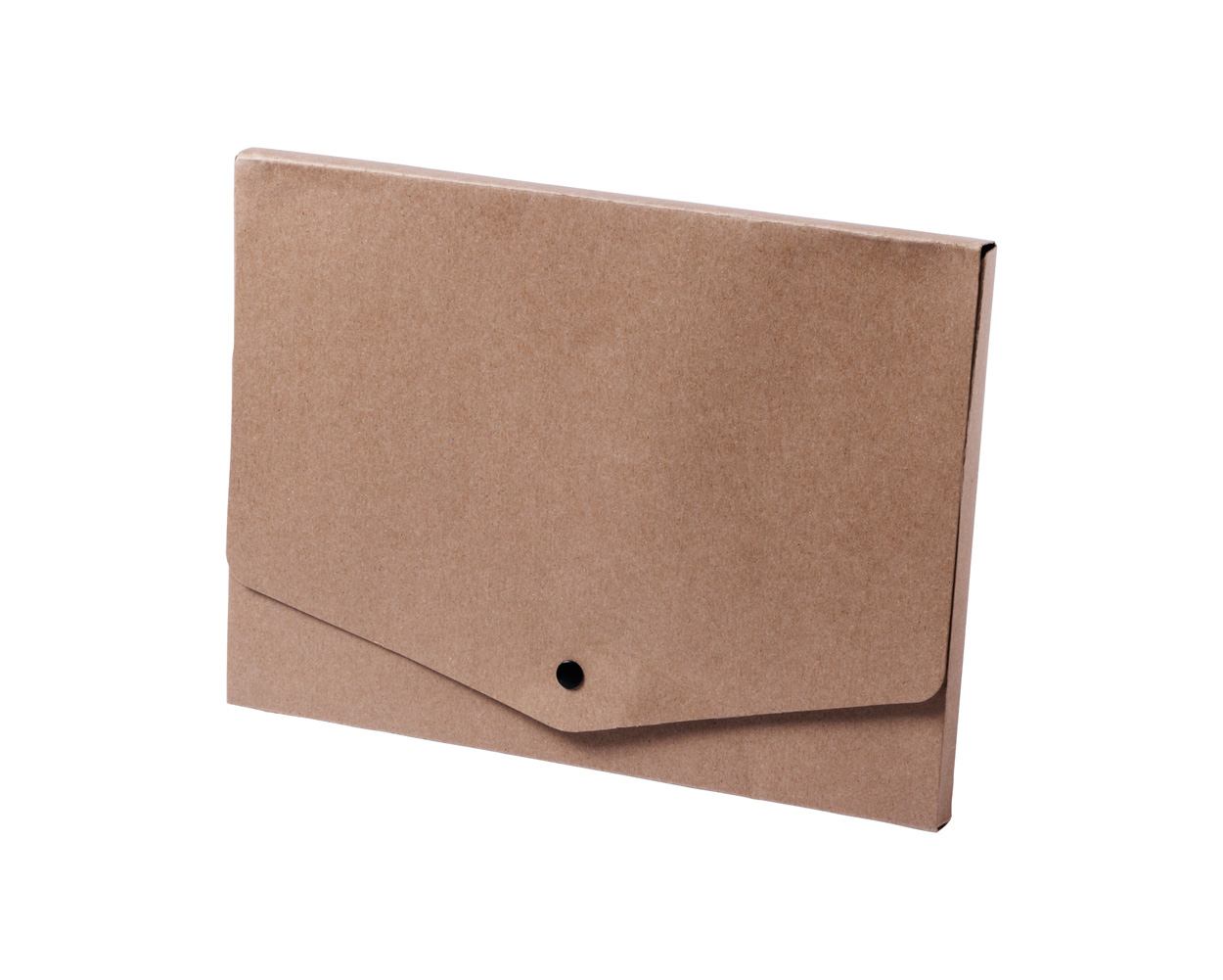 Dokumentenmappe aus Recyclingpapier mit Druckknopfverschluss.