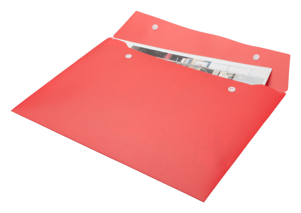 Dokumentenmappe aus Kunststoff mit Druckknopfverschluss.