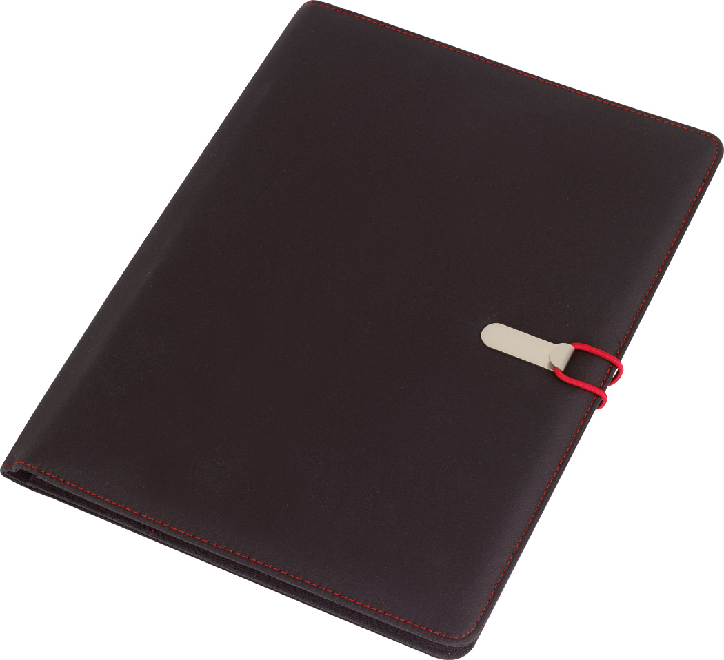 Dokumentenmappe SESSION im DIN-A4-Format: inkl. Schreibblock, Stifteschlaufe, diverse Einsteckfächer, Metallhaken mit farbig-elastischem Verschlussband