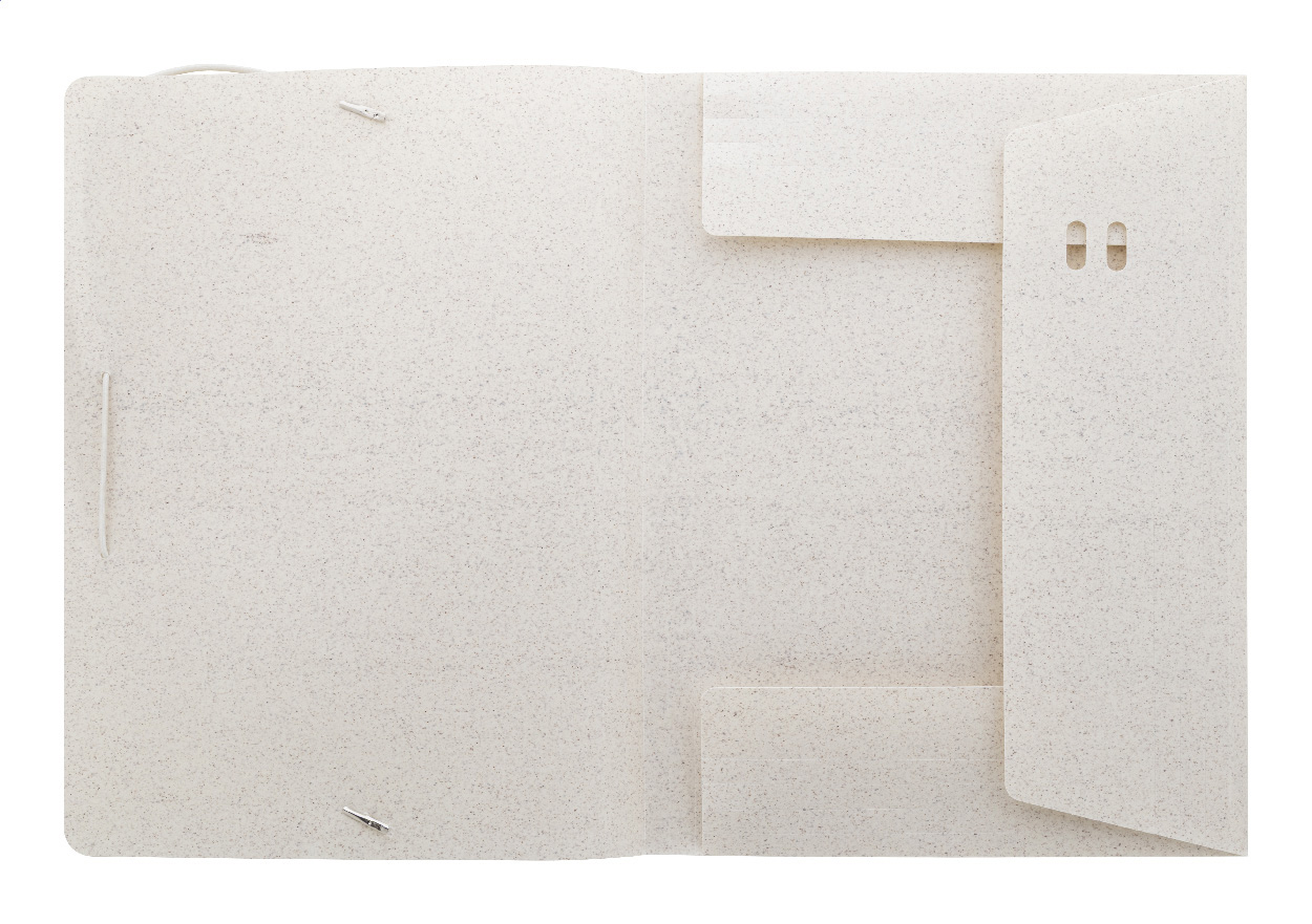Dokumentenmappe aus ökologischem Weizenstroh-Kunststoff mit elastischen Bändern.