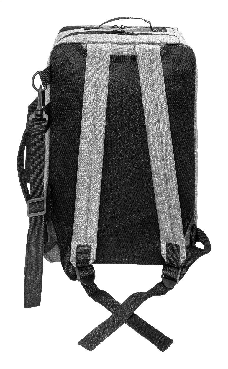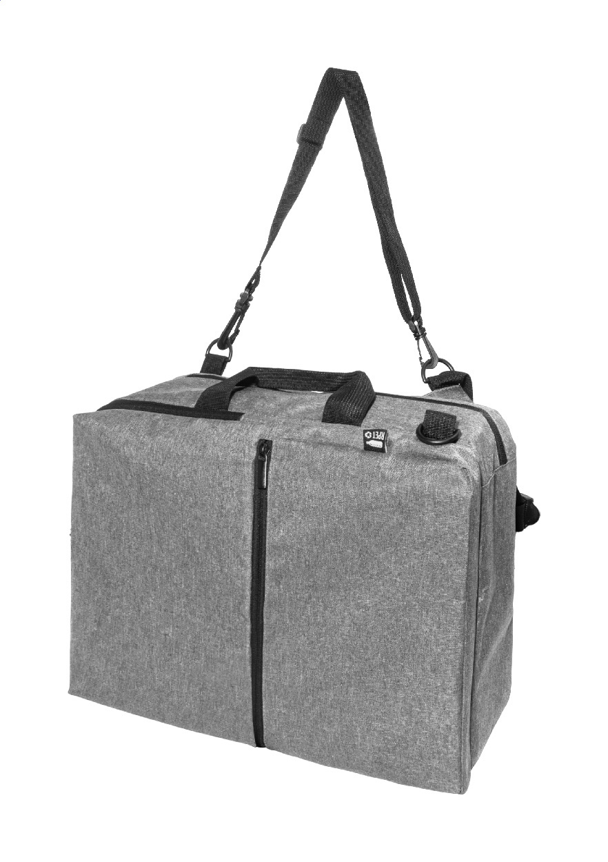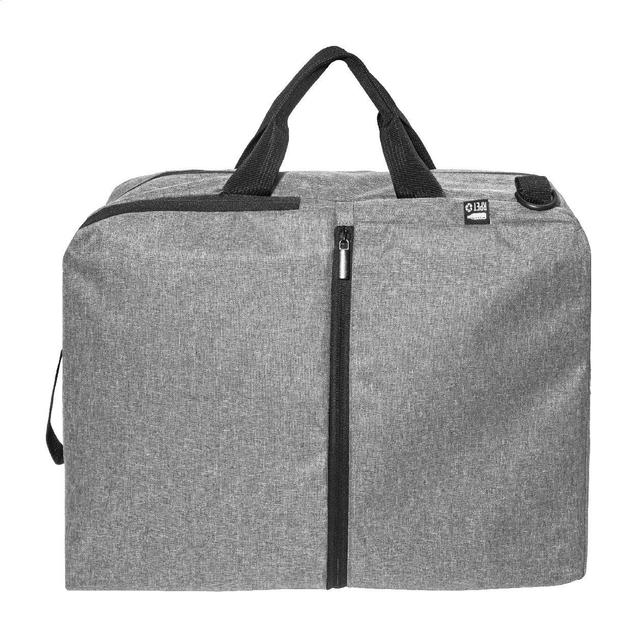 RPET-Rucksack und Dokumententasche mit Doppelfunktion, mit Reißverschlussfach, 2 Reißverschluss-Fronttaschen und gepolstertem Laptopfach (15"). Mit gepolstertem Rücken und Schultergurten. Inklusive zusätzlichem abnehmbaren Schultergurt zur Verwendung als Dokumententasche. Material: 600D RPET-Polyester. Mit RPET-Label.