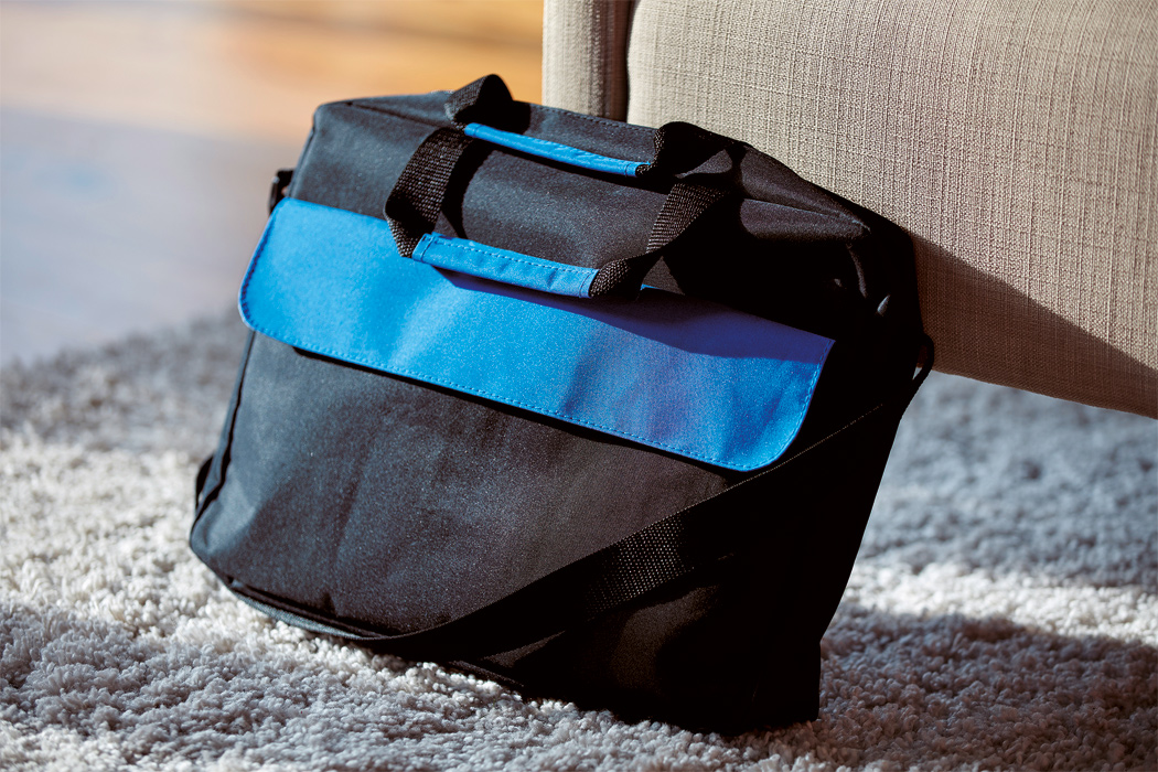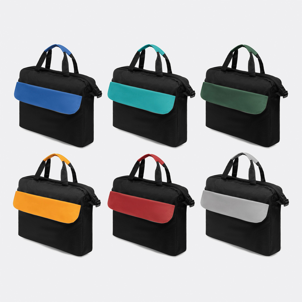 Dokumententasche BRISTOL: Klettverschluss-Vorfach mit farblich abgesetztem Umschlag, geräumiges Reißverschluss-Hauptfach, 2 verstärkte und farblich abgesetzte Tragegriffe, verstellbarer Schultergurt