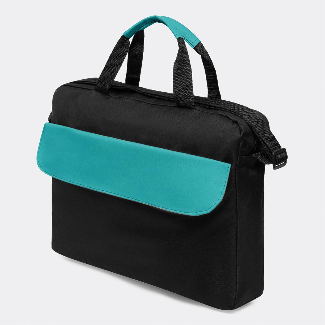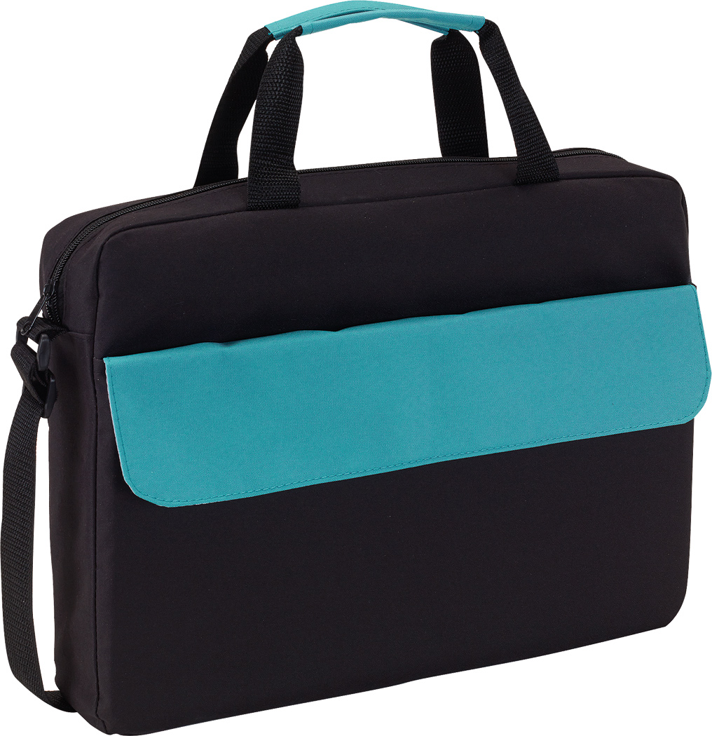 Dokumententasche BRISTOL: Klettverschluss-Vorfach mit farblich abgesetztem Umschlag, geräumiges Reißverschluss-Hauptfach, 2 verstärkte und farblich abgesetzte Tragegriffe, verstellbarer Schultergurt