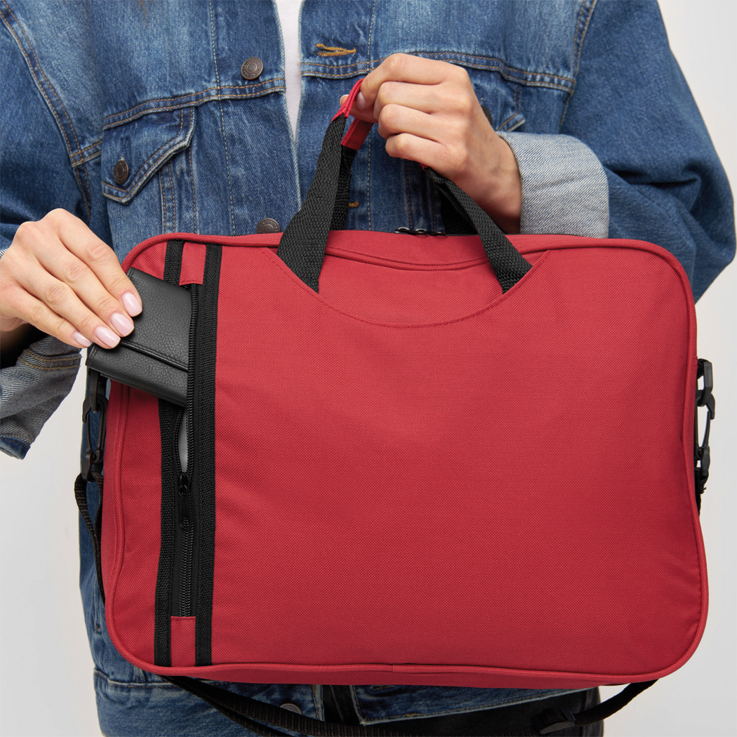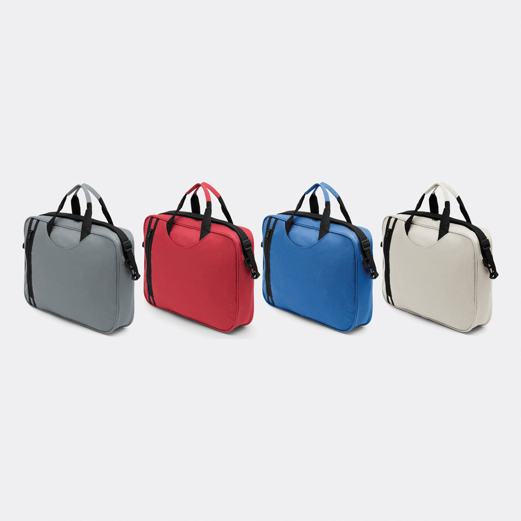Dokumententasche BUSY: vertikales Reißverschluss-Vorfach, Einsteckfach vorne, Reißverschluss-Hauptfach, verstärkte Tragegriffe, verstell- und abnehmbarer Schultergurt