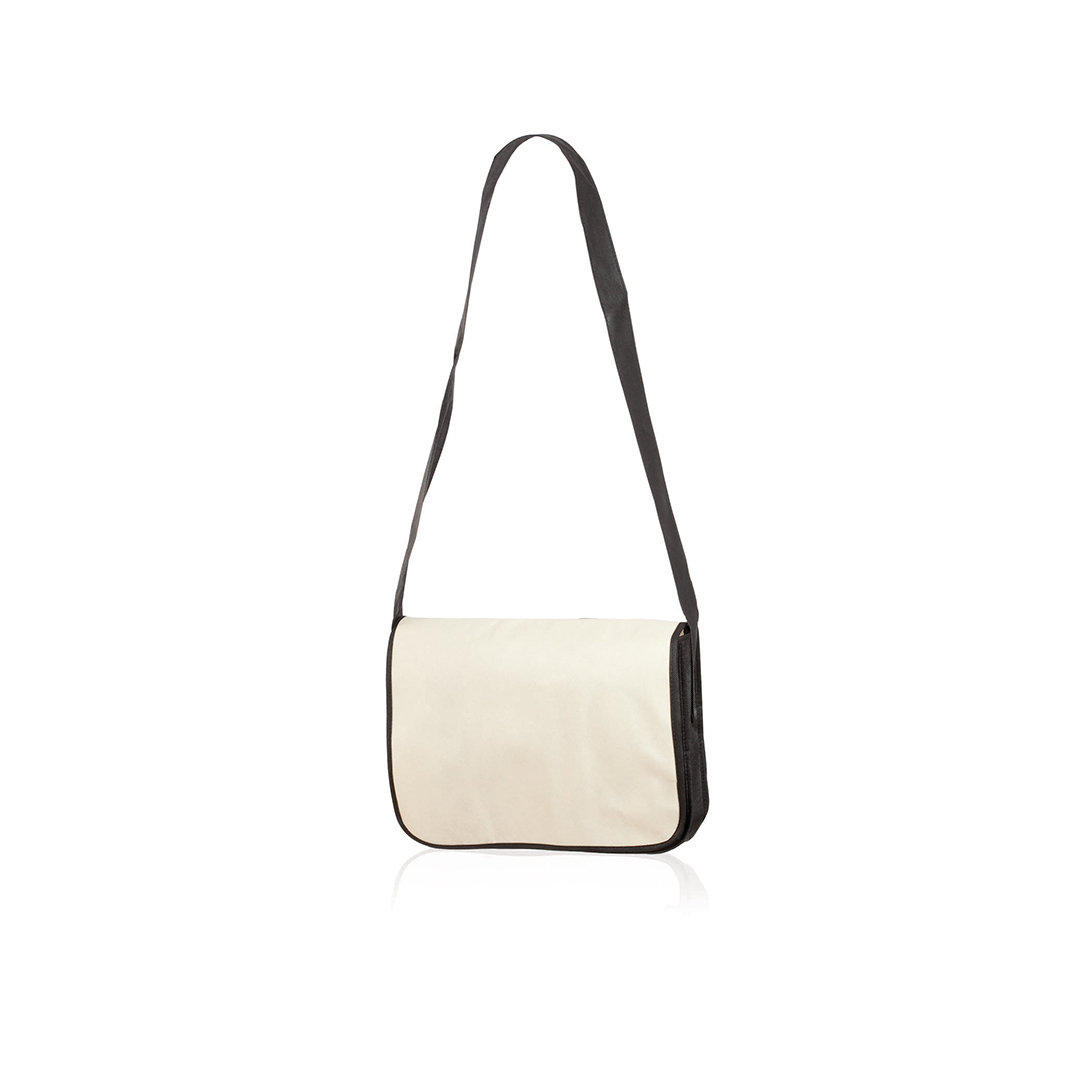 Non-Woven-Dokumententasche aus robustem Faservlies mit Klettverschlussklappe und eleganter schwarzer Paspel. Mit innenfächern für Stifte.