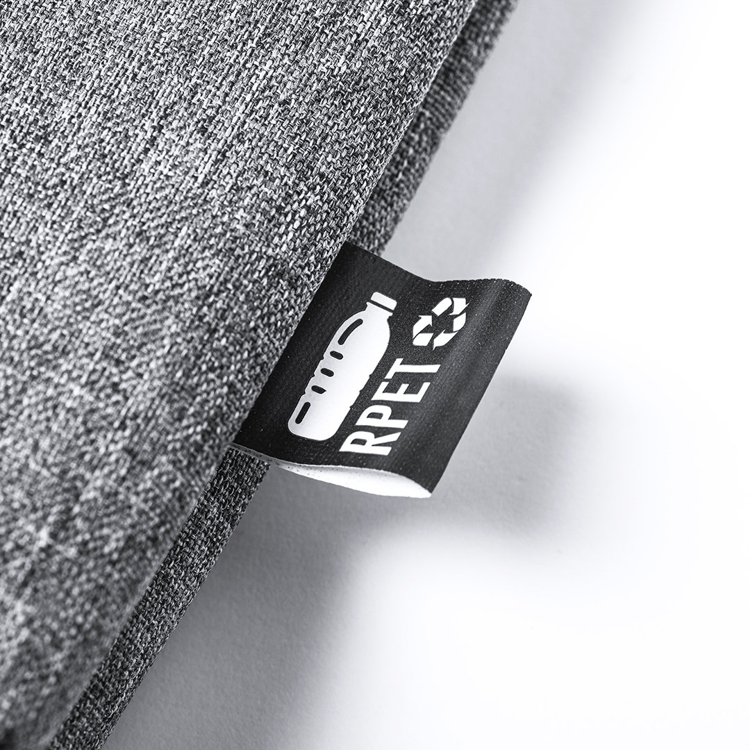 Dokumentenhalter der Natur Line und in widerstandsfähigem 600D RPET Melange-Effekt, hergestellt aus recyceltem Kunststoff, um die Wiederverwendung von Kunststoffabfällen zu fördern und zur Nachhaltigkeit des Planeten beizutragen. Schwarze Details und Hauptfach mit Reißverschluss. Stabile, passende Griffe und RPET-Plakette auf dem Außenetikett.