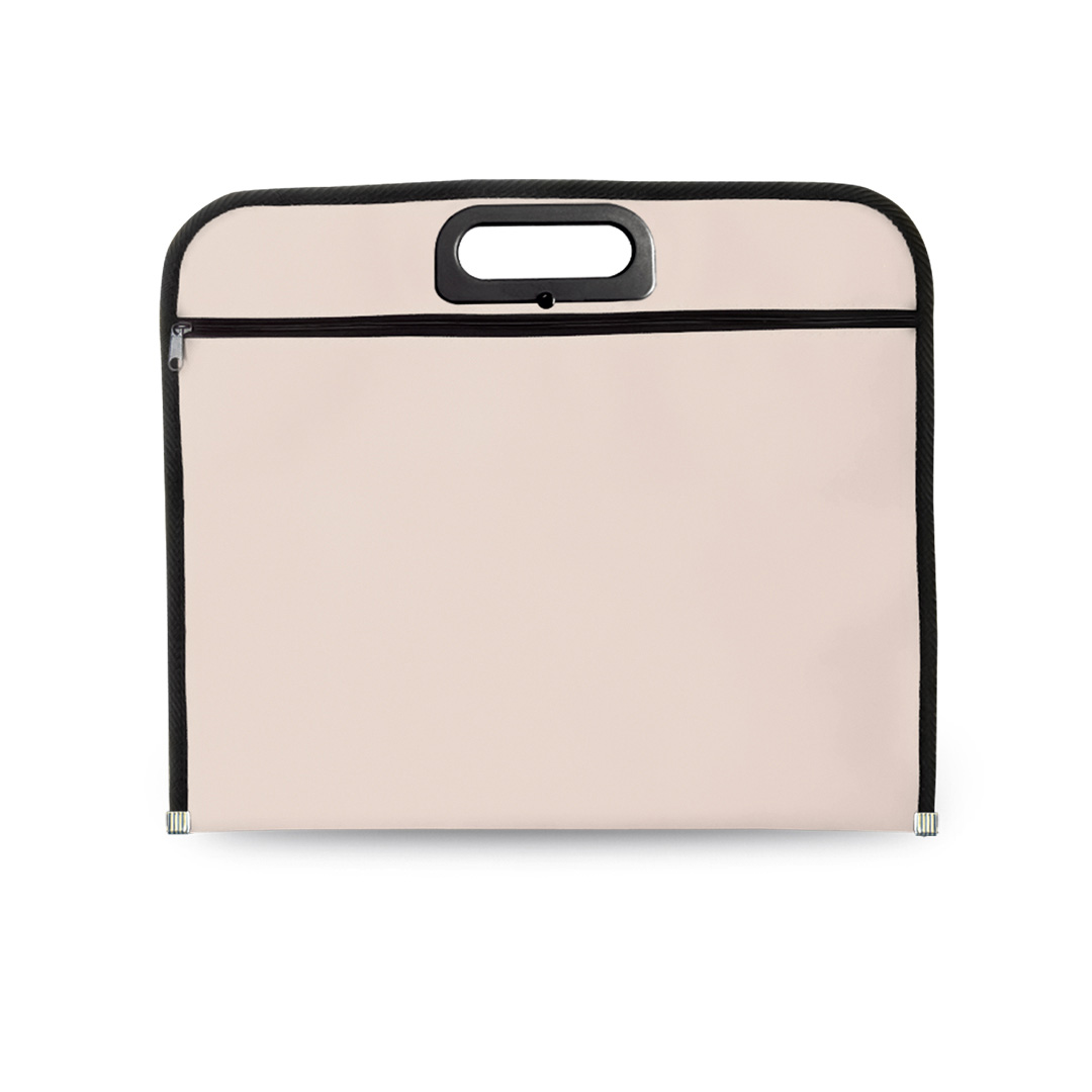 Dokumententasche mit Reißverschluss aus weichem 600D Polyester in lebendigen Farben. Tragegriffe mit originellem Design mit Stanzung, Paspel in Schwarz und Metallverstärkungen am Boden.