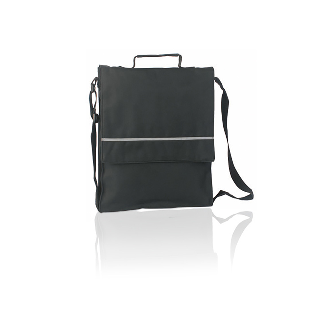 Dokumententasche mit Klettverschlussklappe aus Polyester 600D in lebendigen Farben. Mit reflektierendem Frontband, farblich passenden, verstärkten Griffen, verstellbarem Schultergurt sowie verschiedenen Innenfächern mit Stifthülsen und Smartphone-Fach.