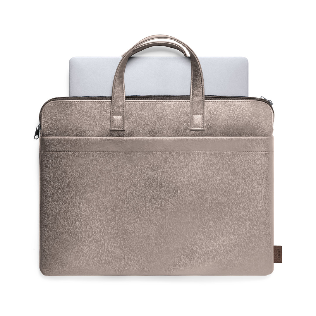 Strapazierfähige, hochwertige Dokumententasche aus recyceltem Leder. Hauptfach mit Reißverschluss und doppeltem Metallschieber. Gepolsterter Innenraum mit Außentasche und passenden verstärkten Griffen. Außenetikett mit Logo für recyceltes Leder. Recyceltes Leder wird aus den Fasern wiedergewonnen, die bei der Lederherstellung weggeworfen werden, wodurch der Materialabfall minimiert und die Umweltbelastung verringert wird, während die ursprünglichen Eigenschaften des Leders erhalten bleiben.