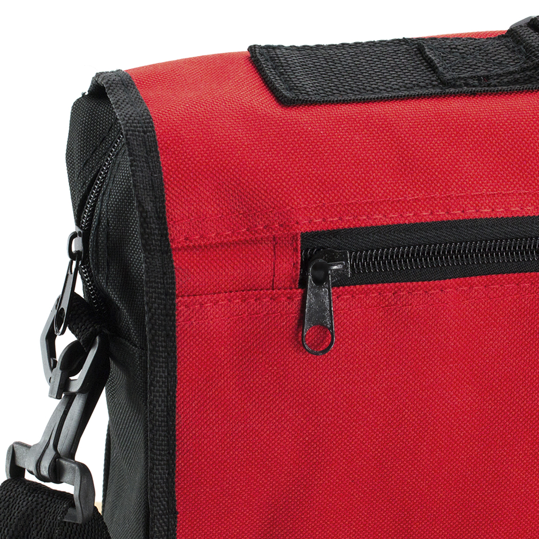 Dokumententasche aus 600D Polyester mit Klettverschluss und eleganter schwarzer Frontleiste. Mit verstärkten Tragegriffen und verstellbarem Schultergurt. Mit Innenfächern für Kugelschreiber sowie Smartphone-Hülle aus PVC mit Touch-Funktion.