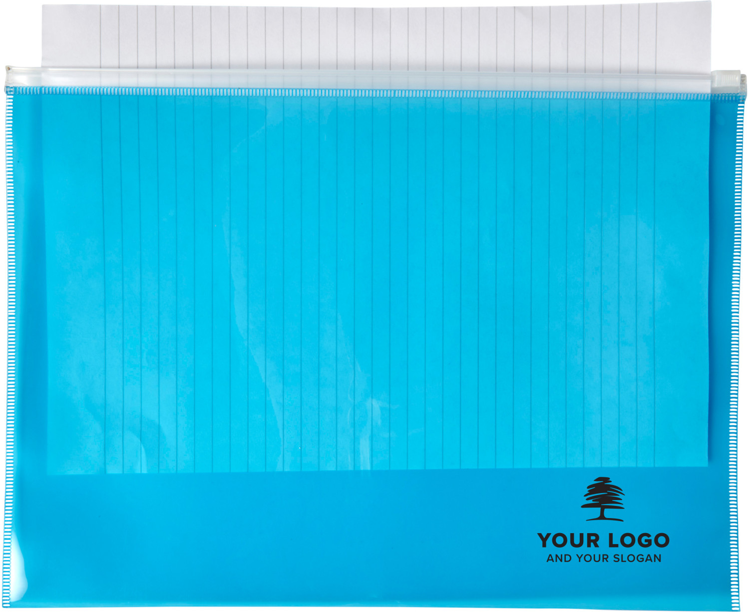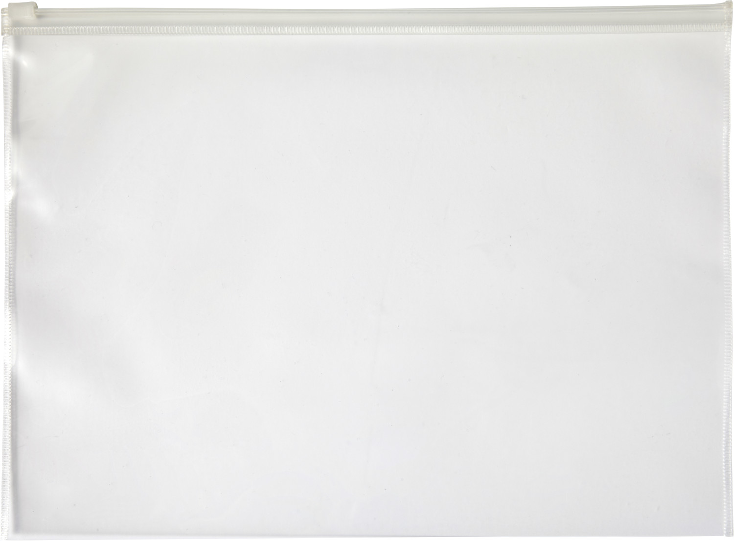 Dokumententasche aus PVC, transparent, ca. DIN A4-Format, mit Zipper.