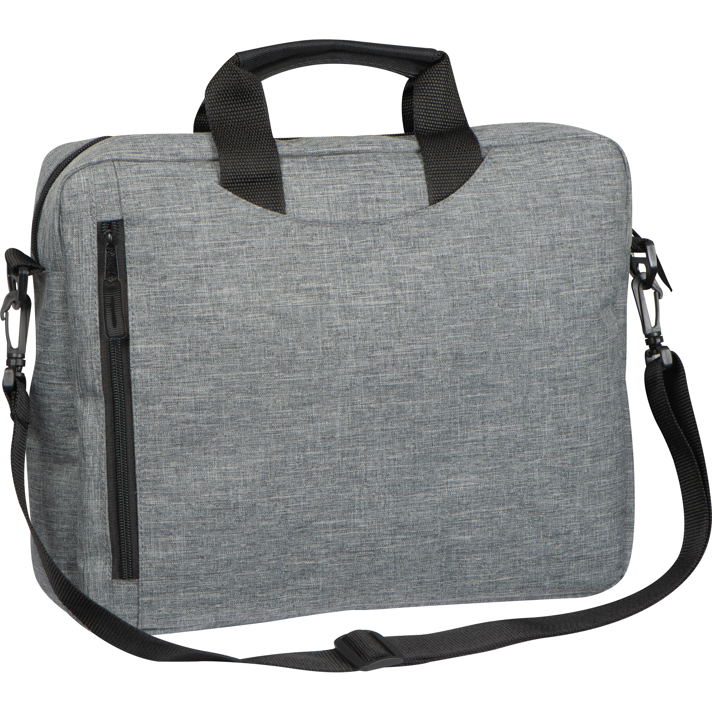Hochwertige Dokumententasche aus Snow Polyester mit einem Reißverschlussfach, zwei Tragehenkeln und einem Schultergurt. Ihre Werbung wird auf das Vorfach gedruckt.