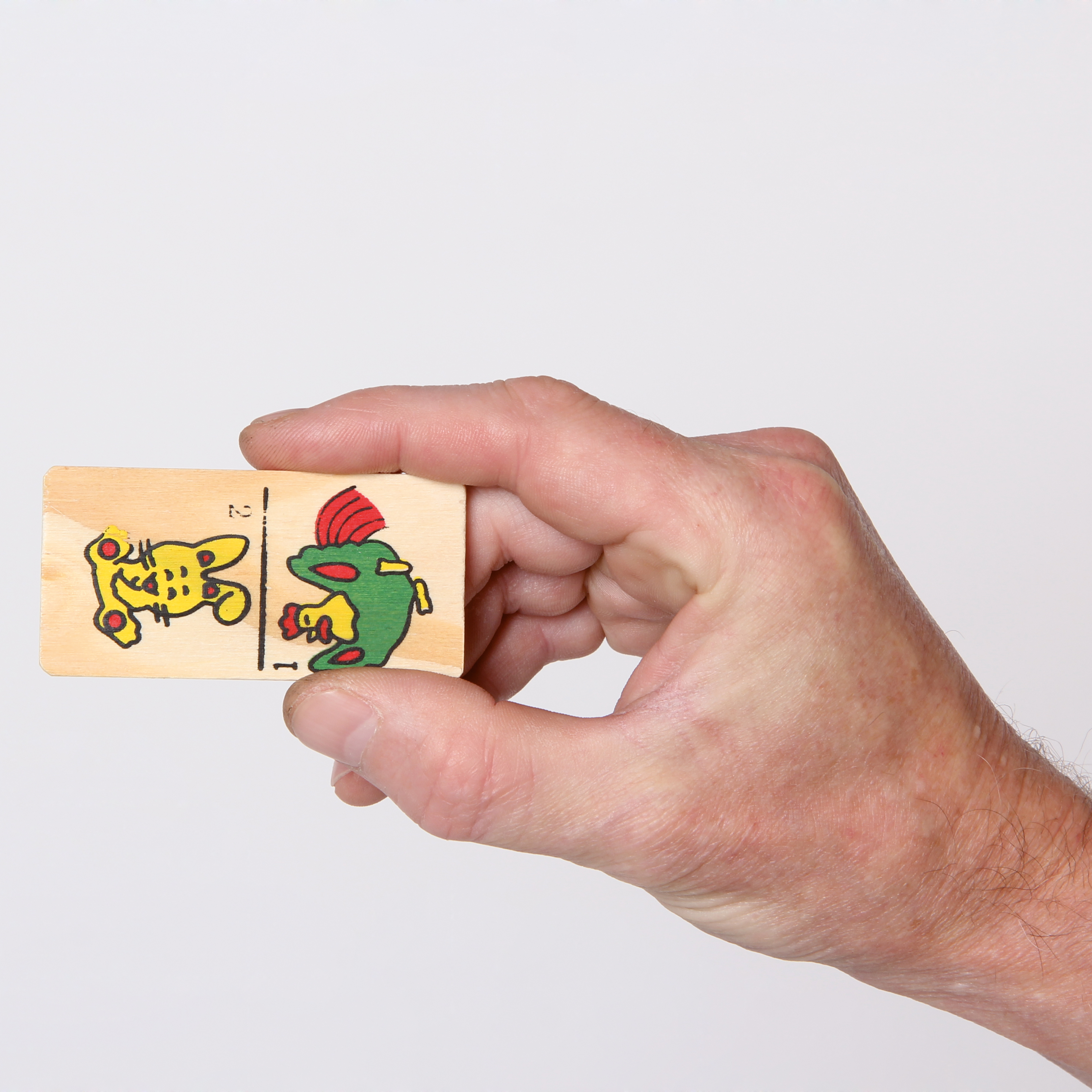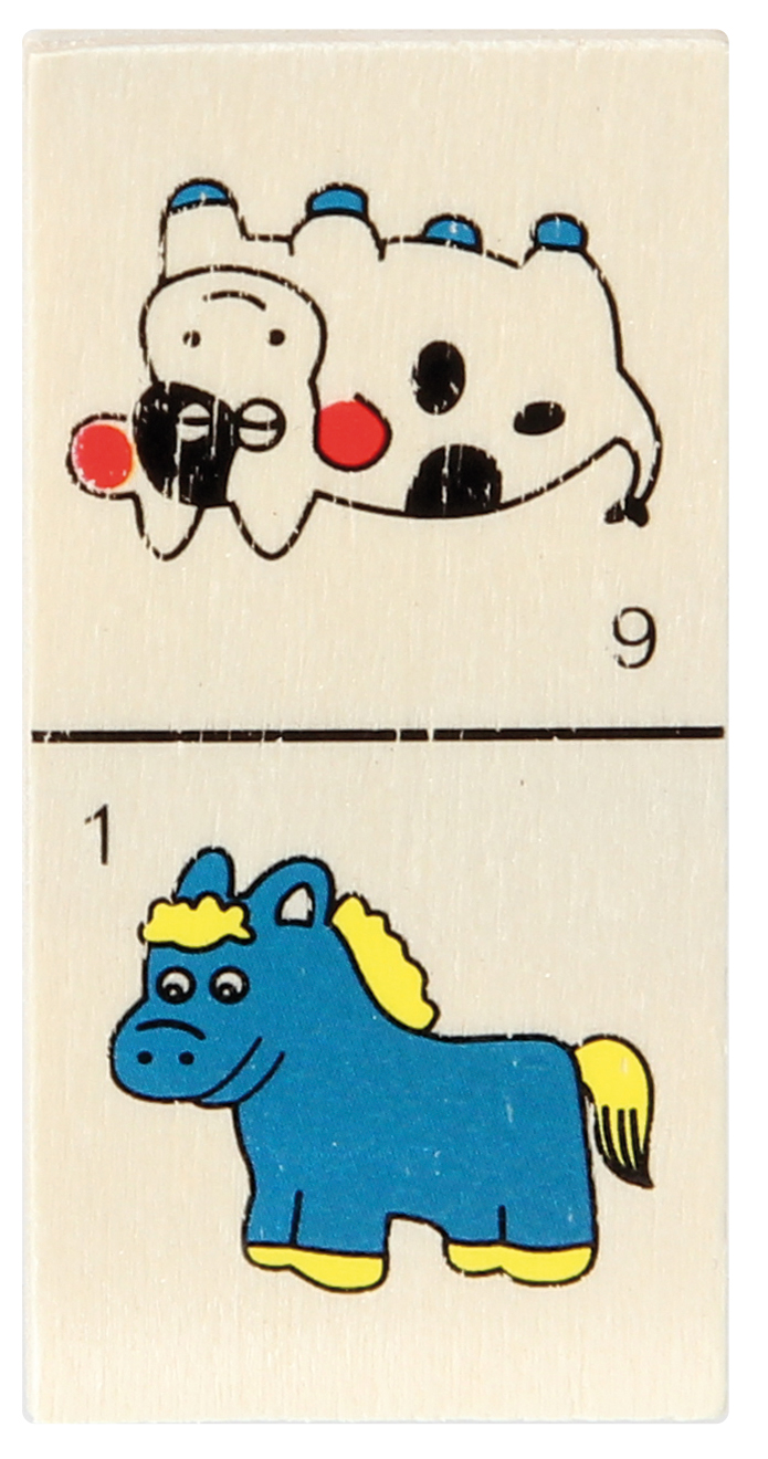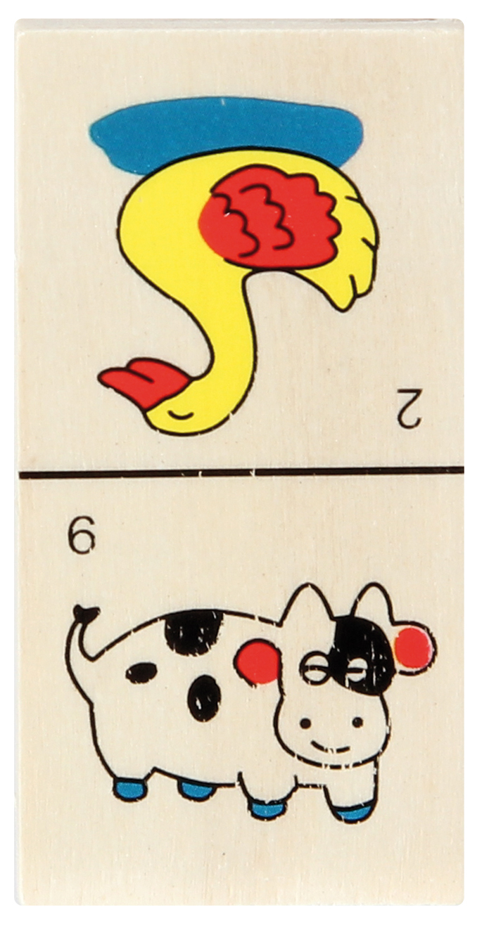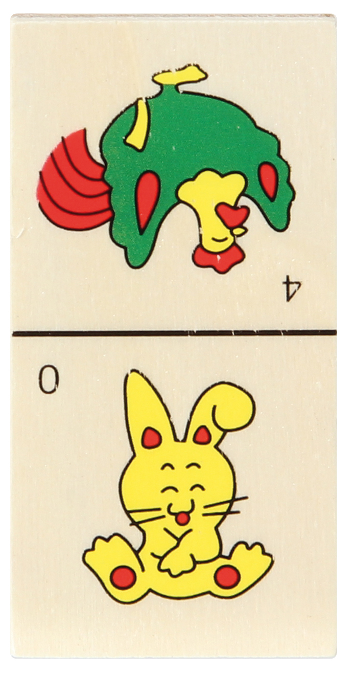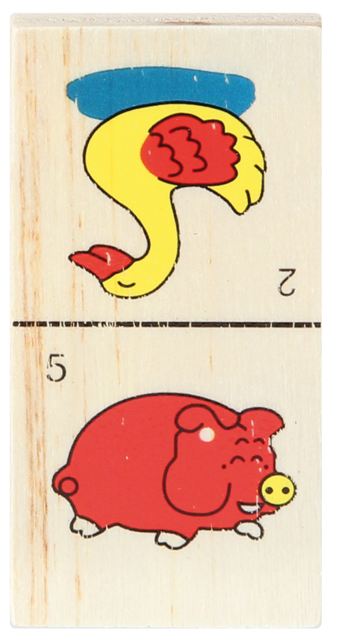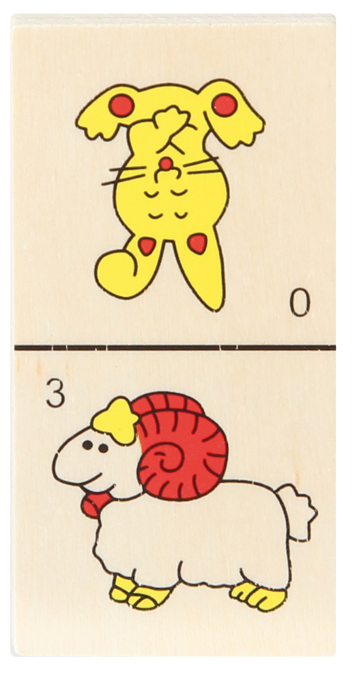 28 Spielsteine mit Tiermotiven und Ziffern. Damit lernt man spielend die Zahlen kennen. Im Holz-Schubkistchen. Spielsteingröße: 7,3 x 3,5 cm.