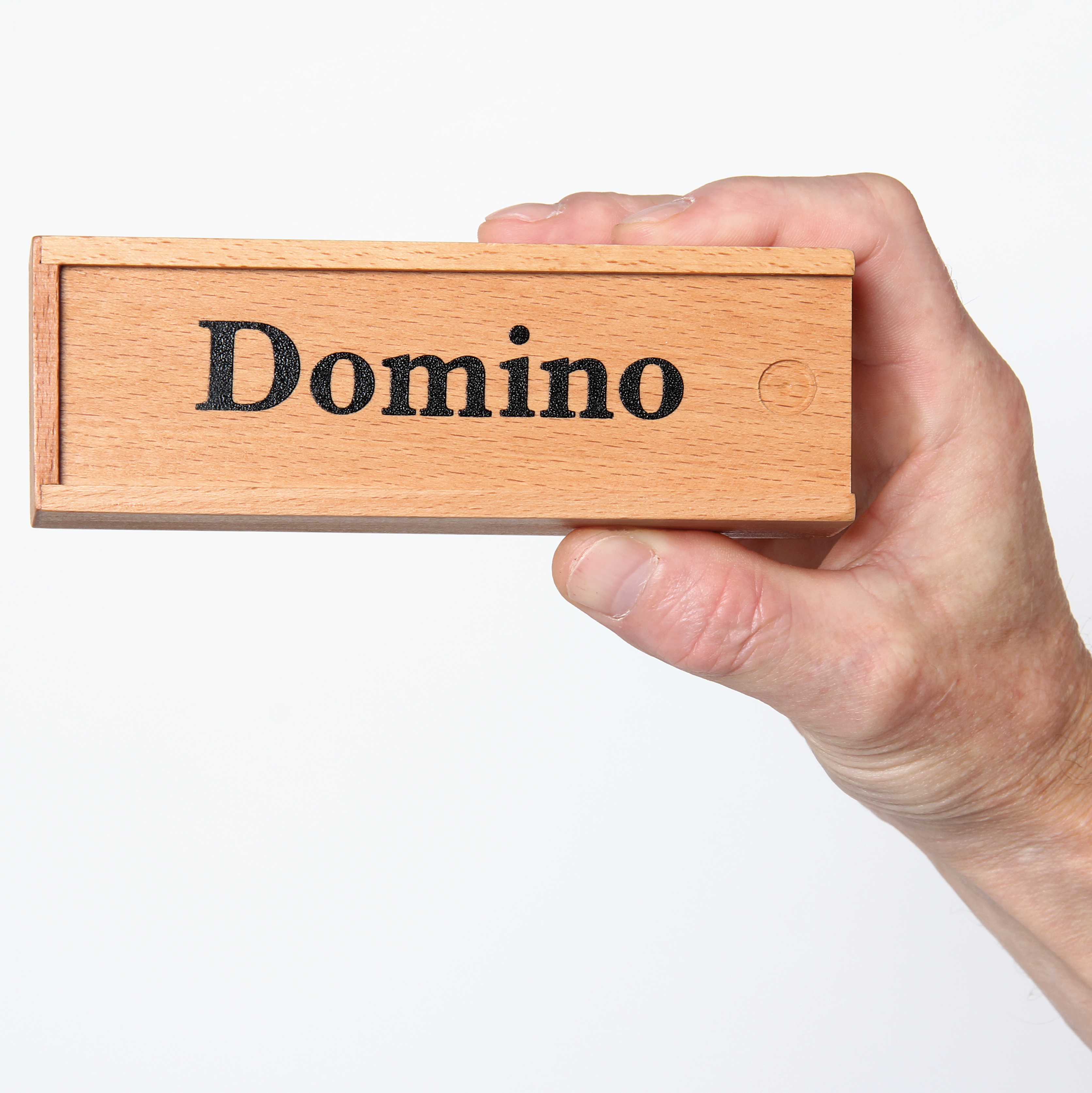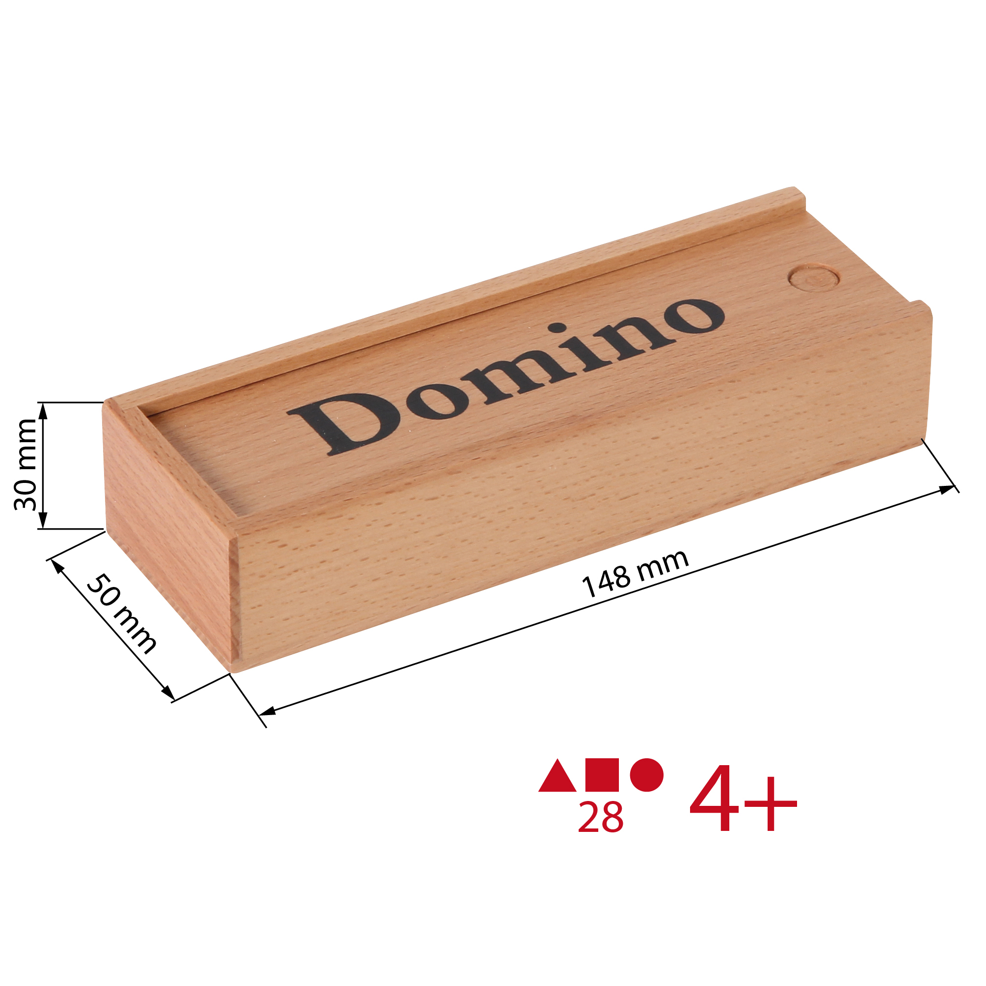 28 Spielsteine (3,7 x 1,8 cm) im Holzschubkistchen.