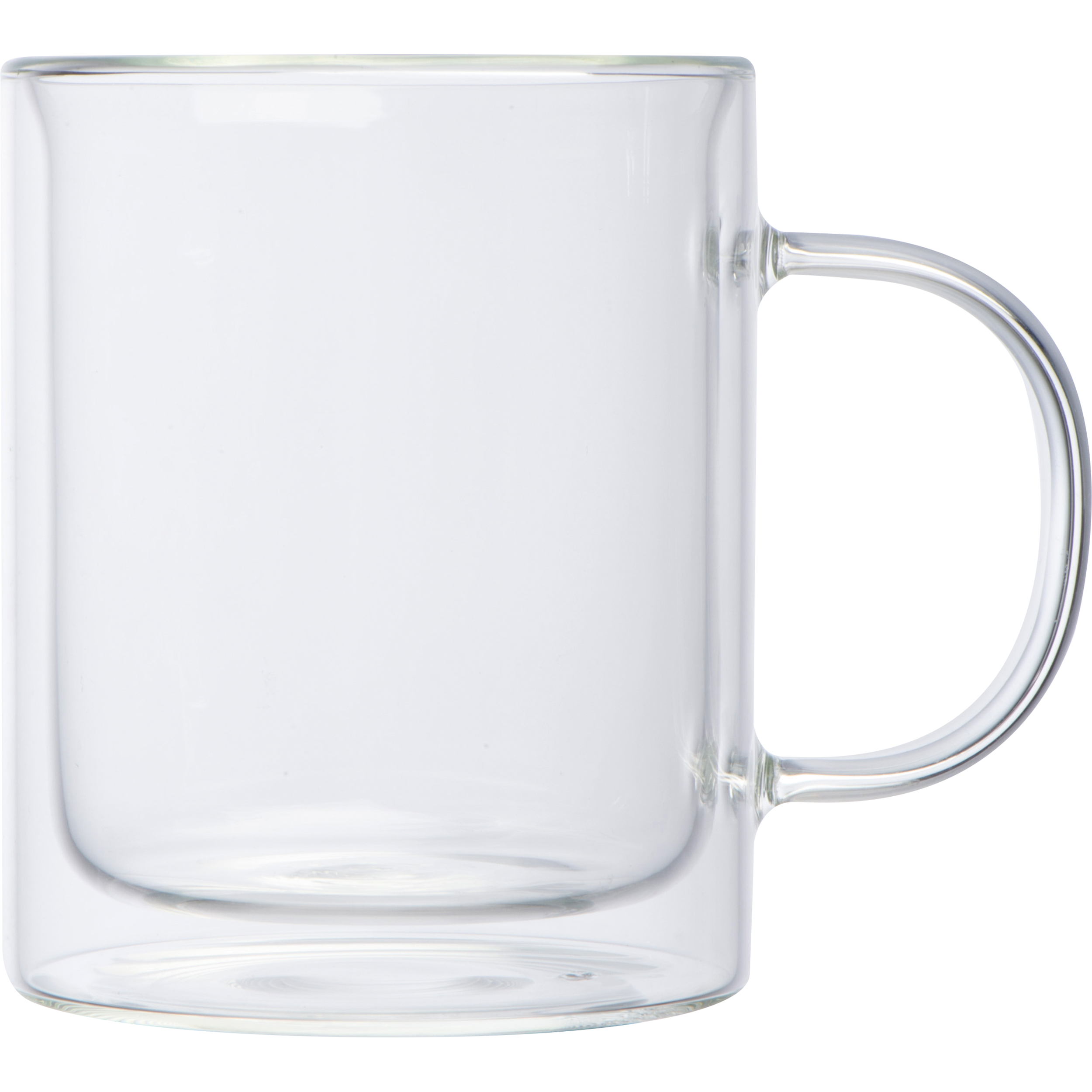 Doppelwandige Tasse aus Borosilikatglas mit einem Füllvermögen von 350ml. Wir drucken Ihre Werbung auf die Tasse. Rundumdruck auf Anfrage möglich.