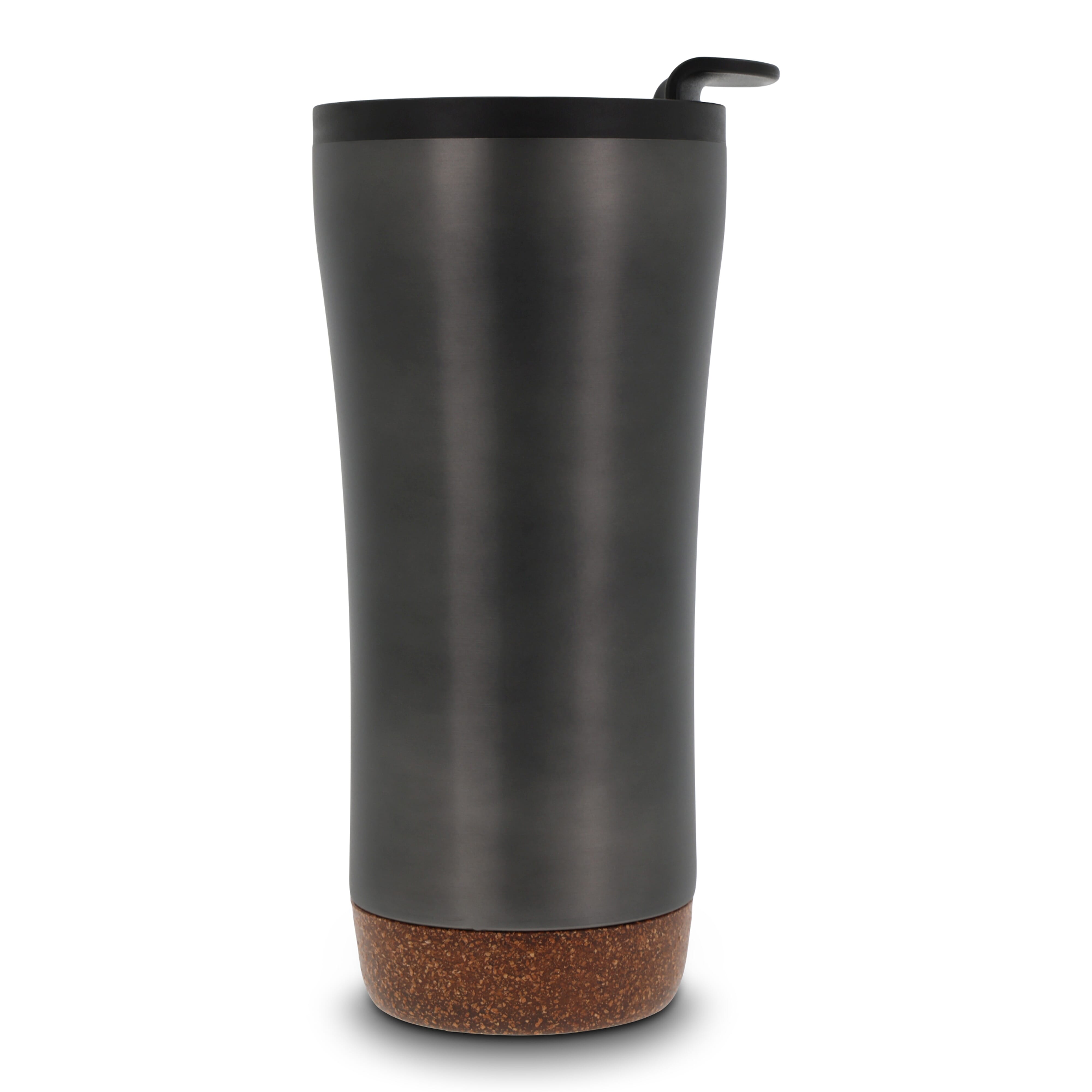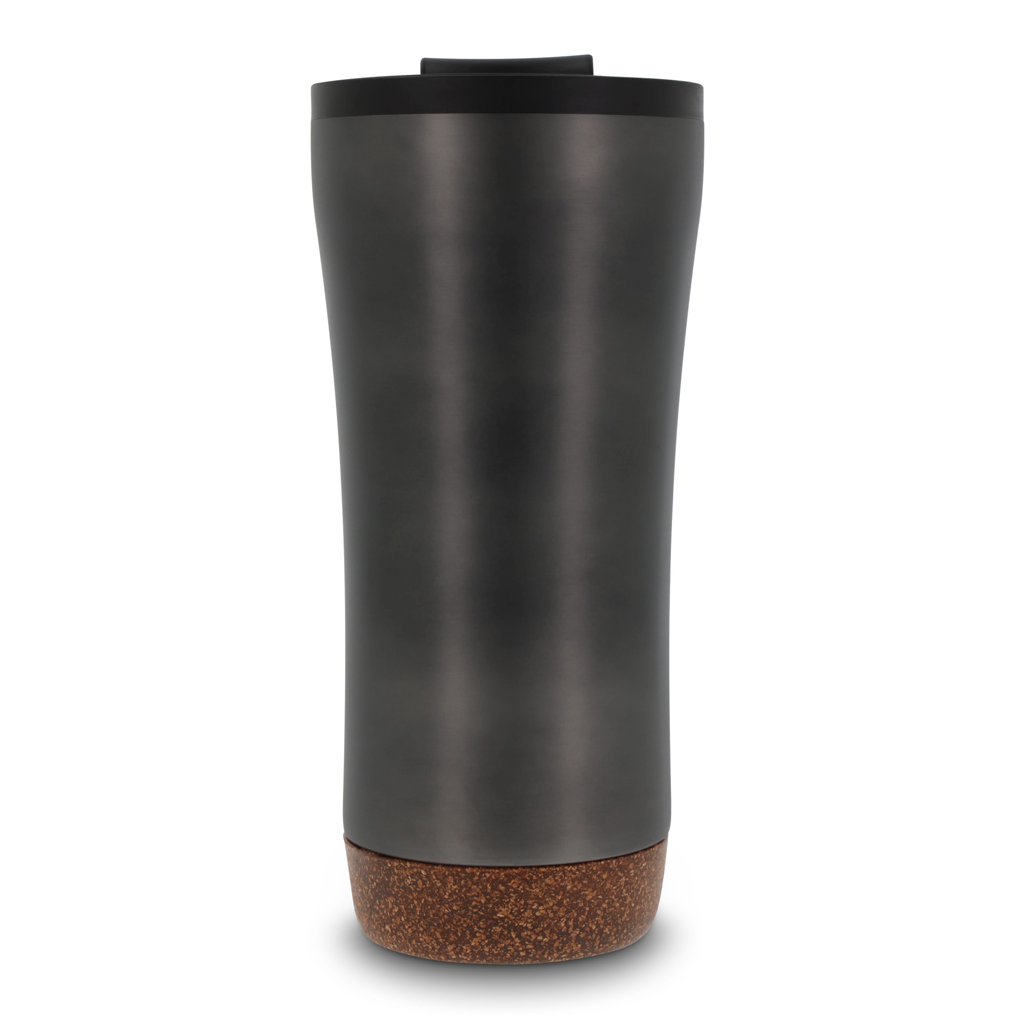 Doppelwandiger Coffee to Go Becher mit Deckel und einer verschließbaren Trinköffnung. Die Aussenwand ist aus Edelstahl und innen aus Kunststoff. Der untere Teil besteht aus Kork, was dem zerkratzen vorbeugt und es werden keine Kaffeeringe auf Oberflächen hinterlassen. Die doppelwandige Ausführung hält den Inhalt länger warm. Der Becher wird in einer Geschenkverpackung geliefert.