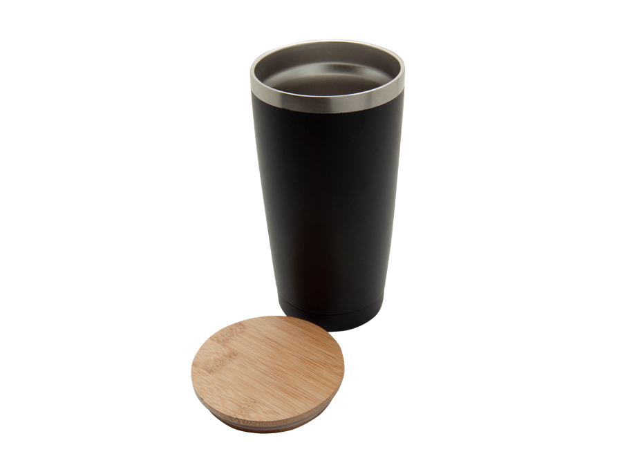 Doppelwandiger Isolierbecher aus rostfreiem Edelstahl 18/8. Deckel aus Bambus mit Silikondichtung. Fassungsvermögen: 500 ml. Warnung: Dieser Artikel ist nicht für die Verwendung in der Mikrowelle geeignet, und der Deckel ist nicht spülmaschinengeeignet. Die Vorteile in Kürze: - Bambusdeckel für Eleganz und bessere Wärmeisolierung Ihrer heißen Getränke. - Pulverbeschichtung für eine verbesserte Optik und Griffigkeit.