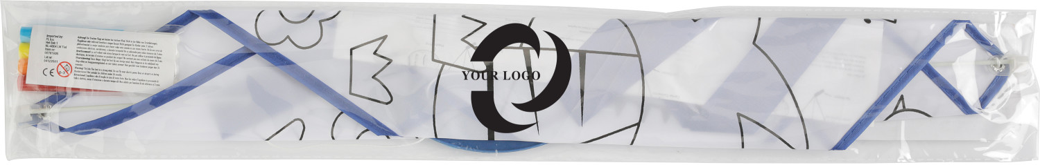 Drachen aus Polyester, inkl. 4 Filzstiften (Rot, Orange, Gelb, Blau) zum kreativen Gestalten, mit Kunststoffgriff.
