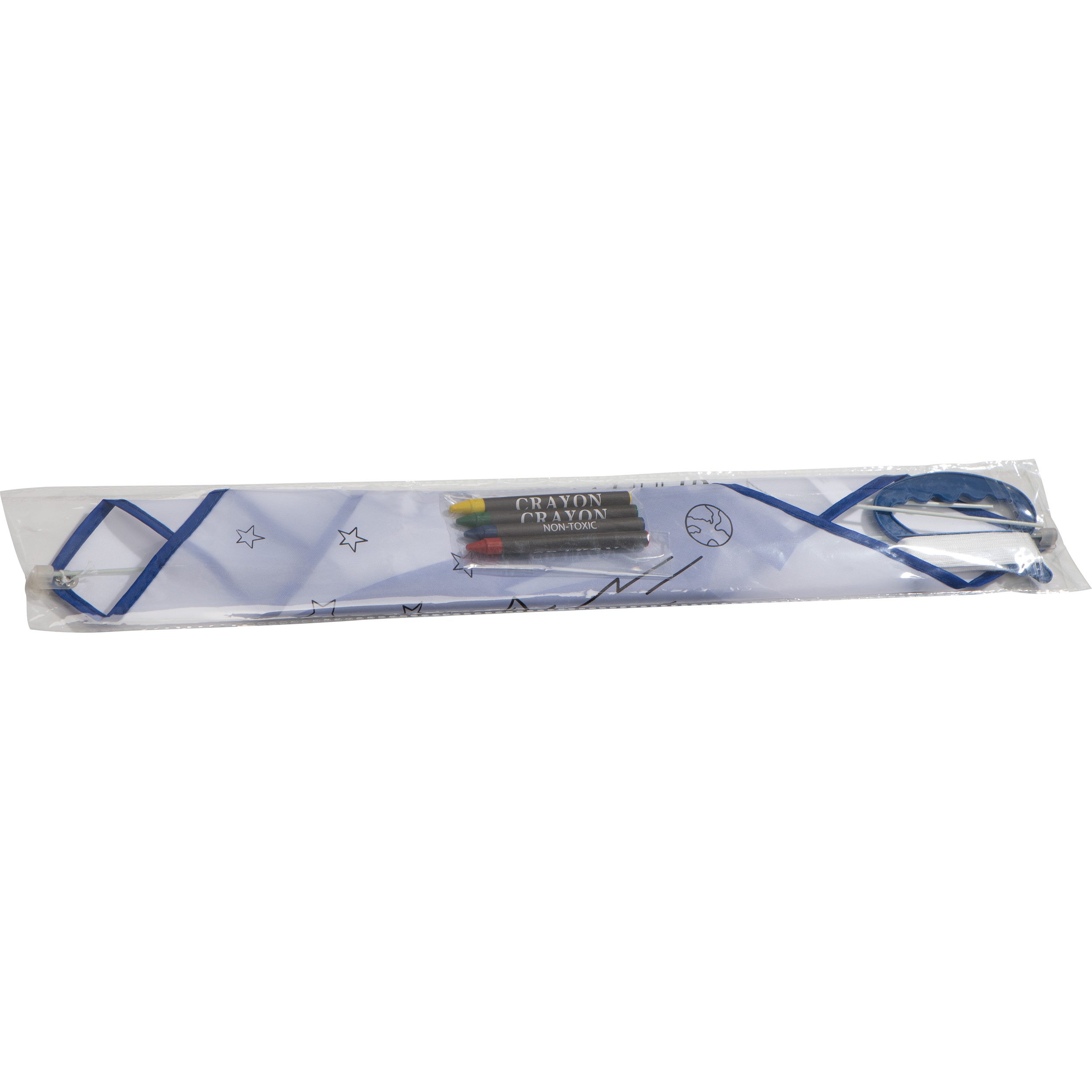 Drachen für Kids zum Ausmalen inklusive 4 Malstiften, Kunststoffstreben, Schweif und Handspule mit Nylon-Schnur. Ihre Werbung drucken wir auf den Drachen.